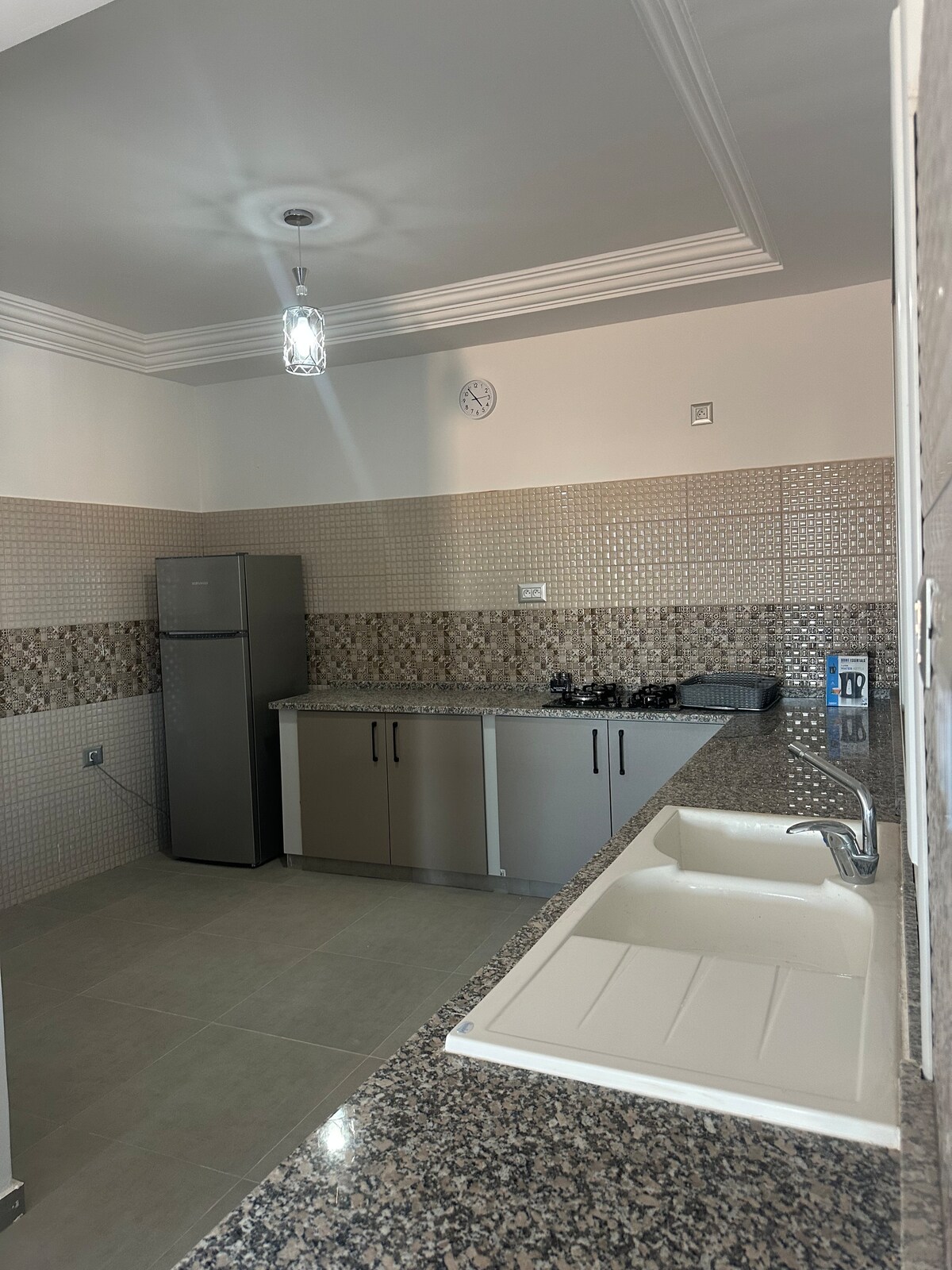 Un charmant appartement neuf haut standing situé au 2 éme et dernier étage dans une résidence sécurisée avec parking et gardien 24/24 h ils peut accueillir jusqu’à 6 personnes . Il est à 1,5 km de la plage la plus belle de l’île À 1km de centre veille Situé au pied du centre commercial d où ont trouve tout type de magasin alimentaire, vestimentaire, services , restaurants, station taxi h 24 au pied de la residence