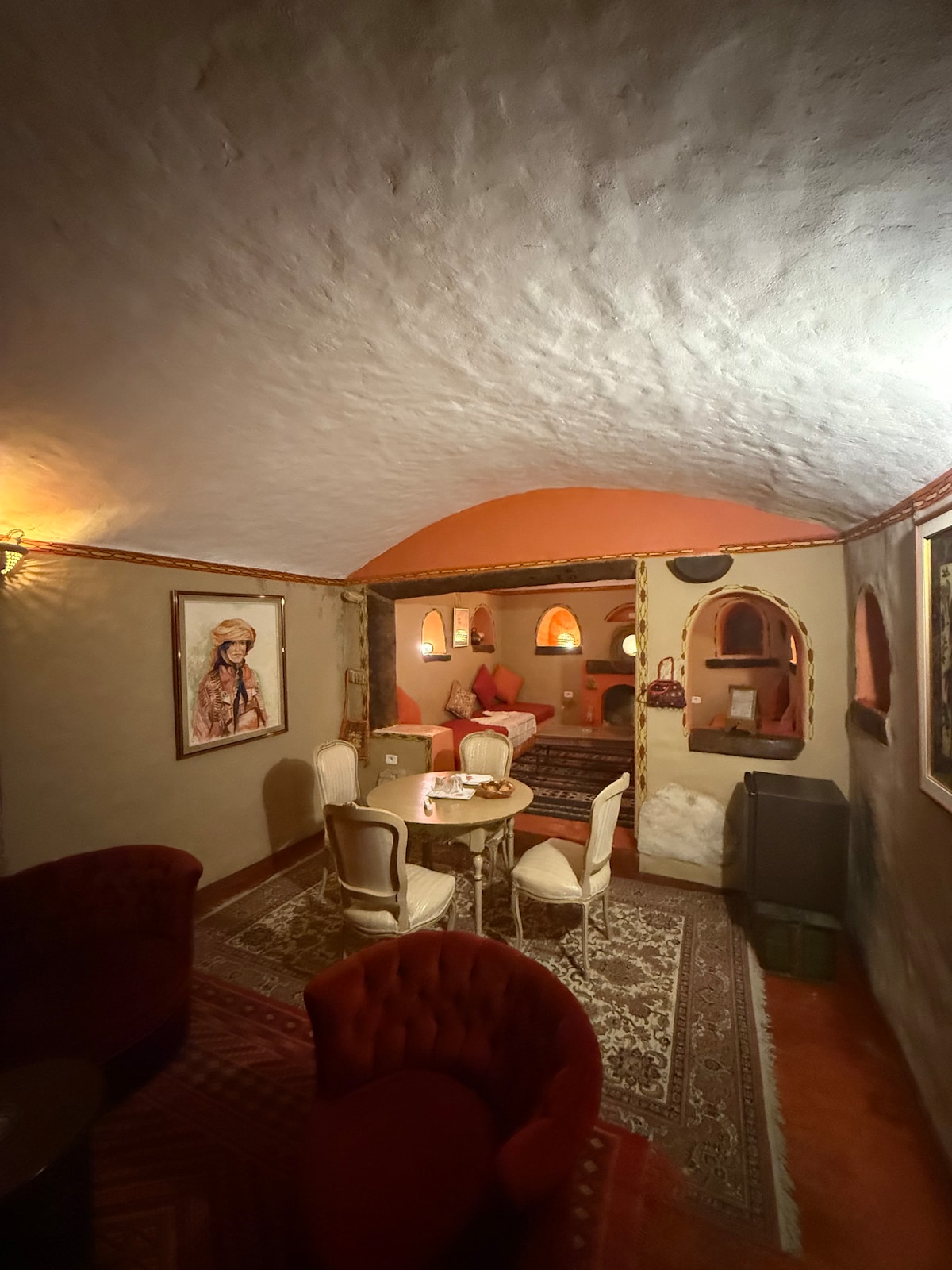 Come and enjoy the calm of the Teboulbou palm grove in Gabes. 3 kilometers from the sea and 30 minutes from Matmata, the gateway to the desert, Dar Jamila offers you total rest. Guaranteed sunshine and locals whose welcome and kindness are well established. You can enjoy our horseback riding in our own stables or pick pomegranates or dates or other fruits. This elegant accommodation, secured by a guard at your service, is perfect for families. Air conditioning..