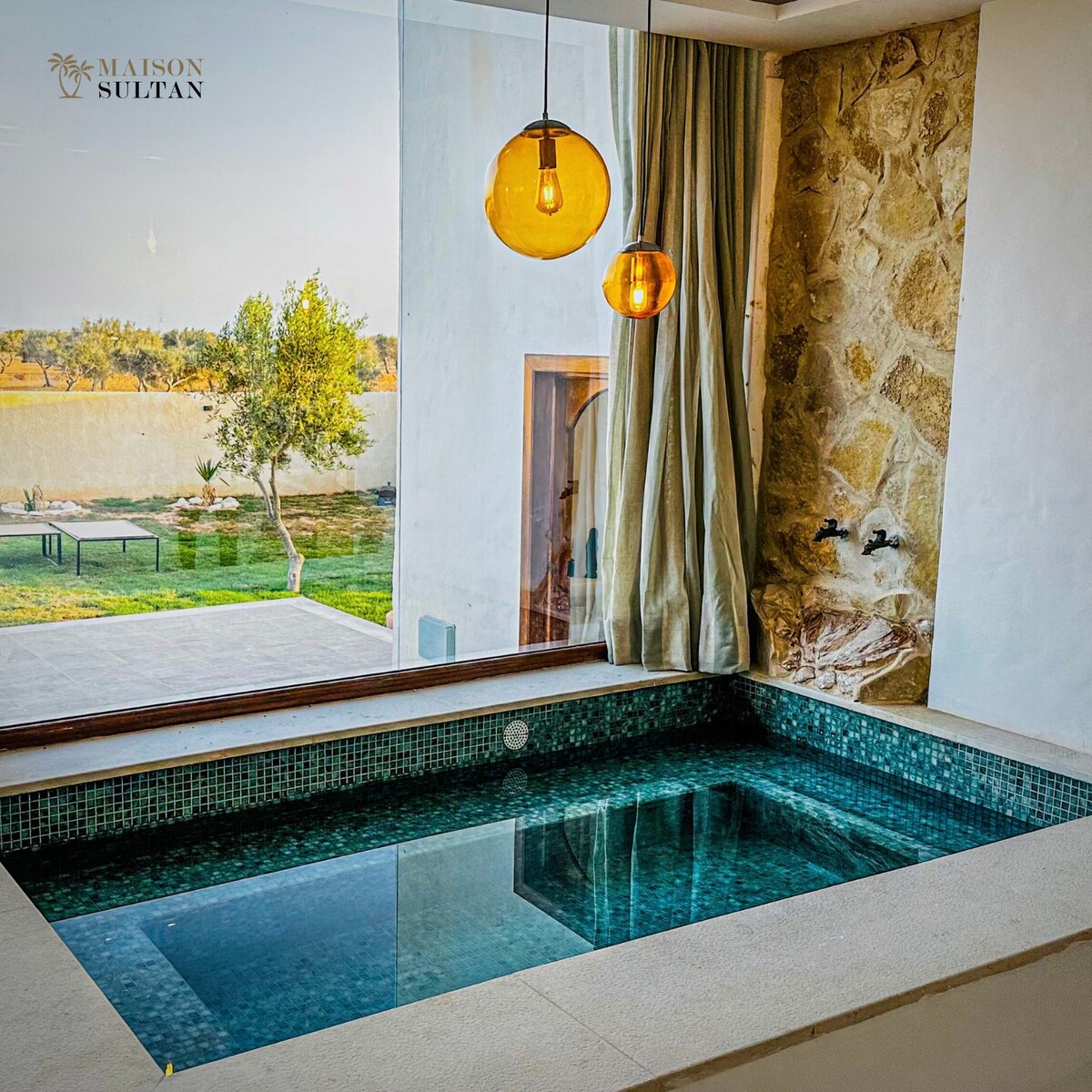 HOUCH | NA est un houch djerbien restauré , idéal pour des vacances en famille ou entre amis. Il propose 5 suites indépendantes, dont 3 grandes suites climatisées avec salon privatif, et 2 suites avec salle de bain privative. Le salon avec son piano, la piscine, la terrasse et le jardin avec barbecue offrent un espace de détente. La cuisine est équipée avec tous les appareils nécessaires. Située à Béni Maaguel, proche des plus belles plages, à 10 min en voiture du centre-ville de Midoun.