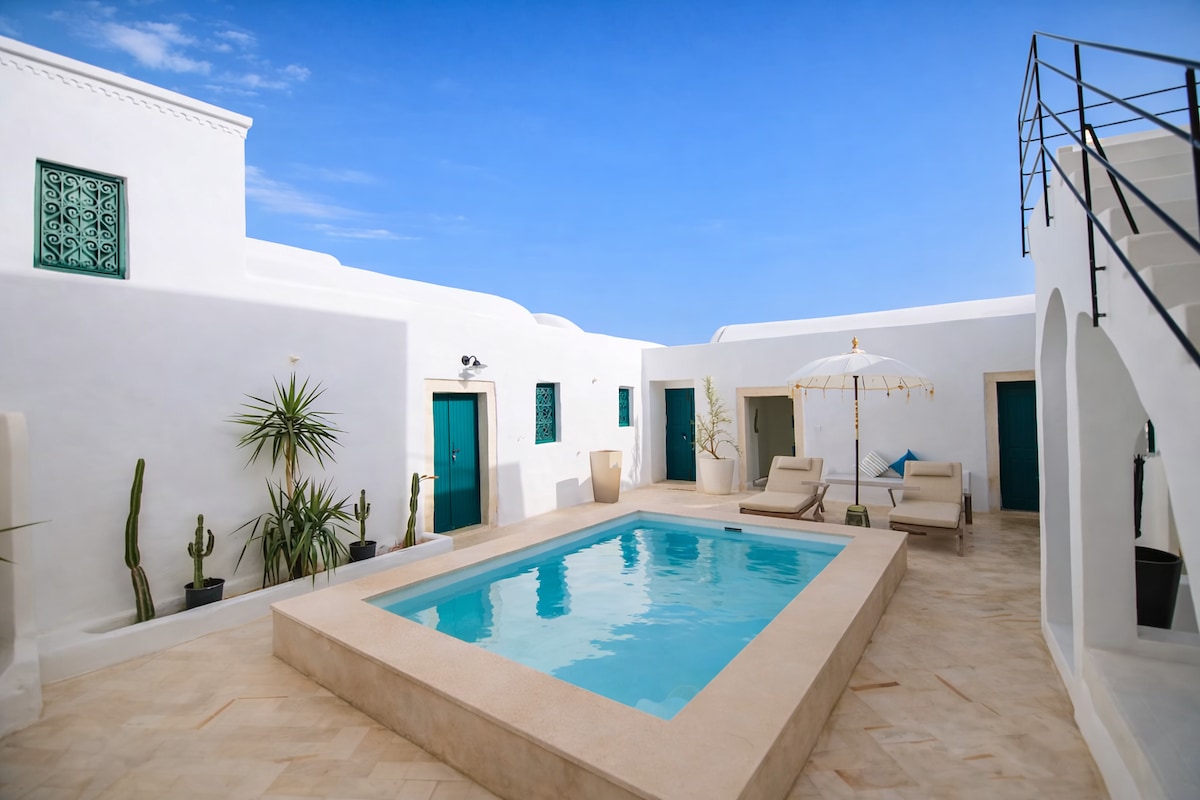 Une maison Djerbienne datant de 1768, restaurée avec passion pour offrir une expérience inoubliable. Plongez dans un monde où le charme historique se marie au confort moderne. Elle abrite quatre suites, chacune imprégnée de son propre caractère. Vous pourrez vous détendre dans la piscine étincelante, vous réunir dans la réception, ou vous échapper dans le vaste jardin. Un coin barbecue vous invite à des soirées sous les étoiles, tandis qu'une terrasse extérieure offre une vue imprenable.