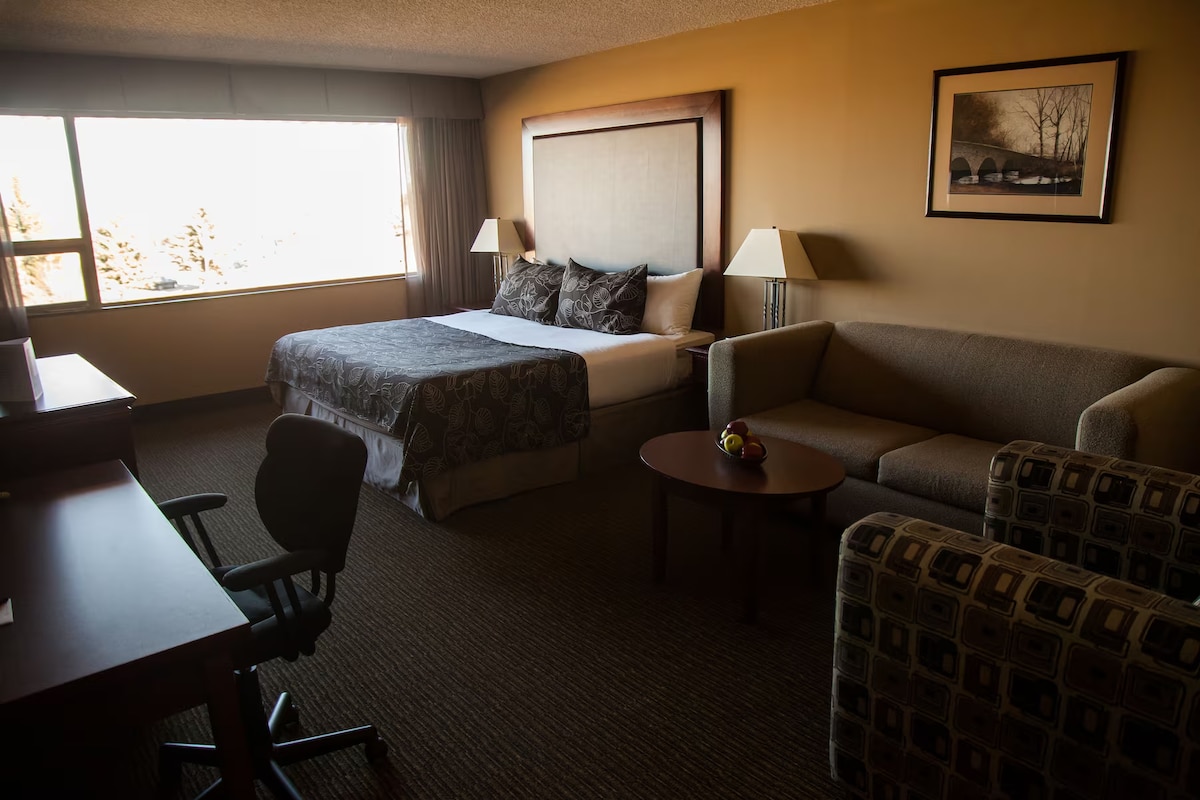 Stay near Medicine Hat’s cultural and shopping hotspots with easy access to the Lodge’s spa, casino, and water park. This deluxe room offers plush bedding and elegant finishes. A great option for travelers looking for style and comfort.