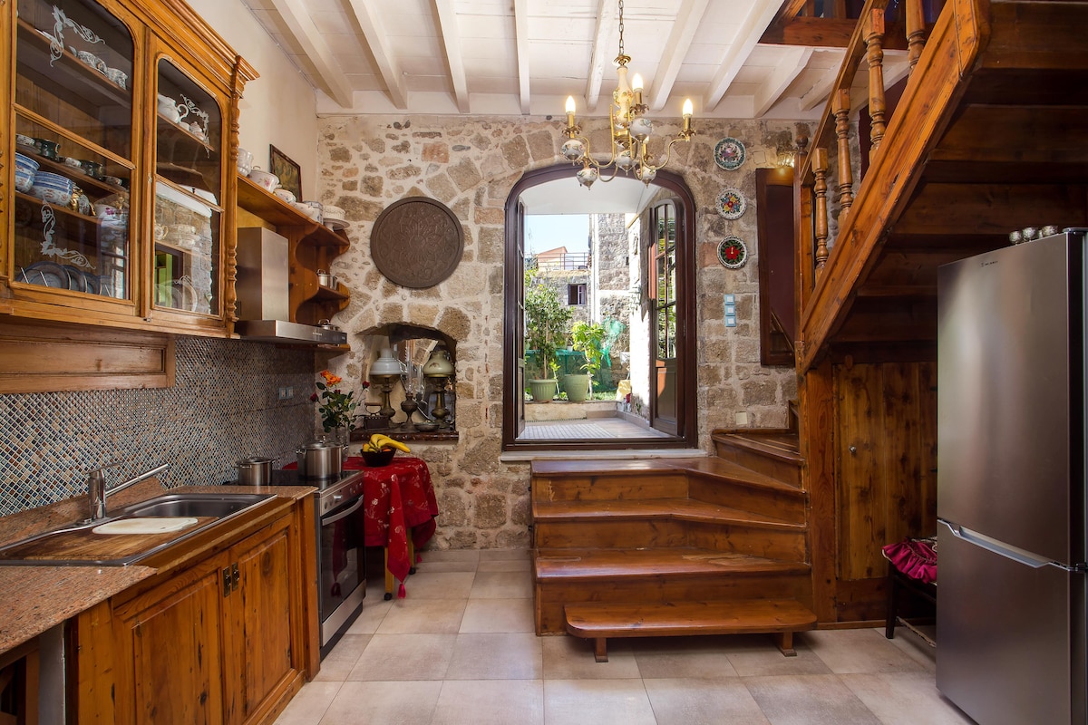 This unique home is located inside the walls of the medieval city of Rhodes. Live in a fairytale, have all the comfort at home and enjoy everything on walking distance. With 4 bedrooms, 3,5 bathrooms, a living space, kitchen and own private patio with swimmingtub, there is nothing not to love about this place. Open your front door and walk the Streets of the knights in the best preserved Medieval town. Right outside the walls you will find the new city center and beaches all around the city.