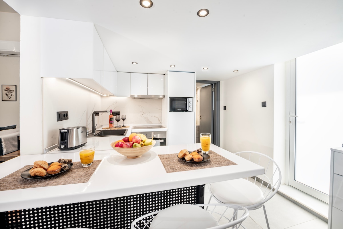Vetus Vicinato Home 2 offers a luxurious stay with its own street-level entrance and occupies the entire ground floor of the building. This brand-new residence features a spacious garden complete with an outdoor jacuzzi, sun beds, and a patio equipped with a dining area. Inside, the gleaming interior includes a living area seamlessly integrated with a kitchen and dining space. The home also boasts a bathroom fitted with a rainfall shower and a generously sized bedroom furnished with a queen bed.