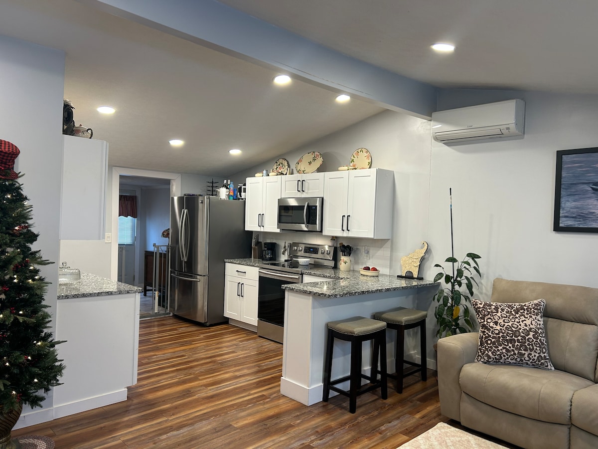 Come Escape to our peaceful, completely renovated retreat at the Lake! Our home has 3 bedrooms 2 full bathrooms and a second living room. This cozy home sleeps 8 and is perfect for families or groups. Enjoy an open- floor plan, a fully stocked kitchen, and a spacious backyard with a fire pit. Located just a short 0.25-mile walk from the lake and directly across from The Chippewa Inlet hiking trail, it's the ideal spot to relax and unwind. Pets are welcome!