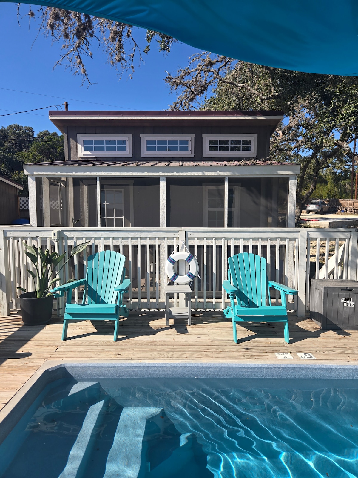 Hi and welcome to our cabin! We hope your stay is enjoyable whether you came to cook in the kitchen, BBQ, watch the sunset from the hot tub, relax in the pool (seasonal), stargaze into hillcountry night skies without city lights or noise, read in a hammock, sit by the fire, play indoor games, basketball, bean bag toss or yoga on the patio. We truly have it all. Please note we are in a cove of Medina Lake which may be 40ft deep here at the house or 100% dry. Please check prior to your booking!