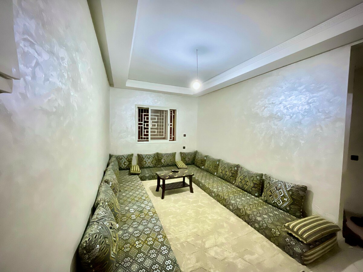 🌴🌴Idéalement situé à seulement 15 min du stade, parfait pour profiter de la CAN 2025 🥇Bienvenue dans notre charmant appartement situé dans quartier très calme avec wifi haut débit ,7 min au centre ville et 10min à jama3 lafna avec voiture ou taxi ou indrive Parfait pour les couples, les petits groupes ou les voyageurs d'affaires, cet espace moderne et accueillant est votre havre de paix après une journée bien remplie
