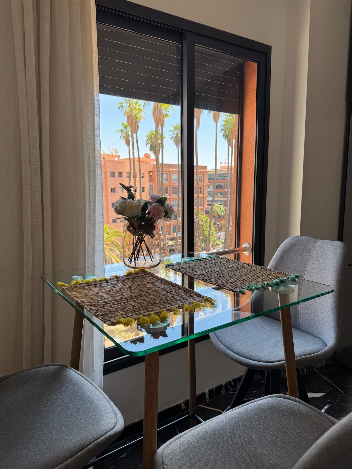 Welcome to our thoughtfully designed one-bedroom apartment with pool, where positive energy flows through every inch. in the center of Gueliz 10 min walk from carré Eden and the 5 minutes from the train station. Perfectly situated, you'll be surrounded by an array of restaurants, cafes, and shops. Well Equipped, we've taken care of every detail, high-speed internet, IP TV, Netflix, ensuring a seamless experience and make your stay stress-free