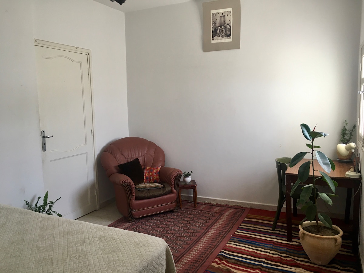Cet hébergement de charme offre un accès facile aux boutiques et restaurants dans la médina . La chambre se trouve au rez chaussée d’un Riad sur deux étages , elle ouvre à l’extérieur sur un patio.Elle possède un lit à deux places , deux placards , un bureau , fenêtre et salle de bain privative avec la lavabo et douche . Climatisation et chauffage et wifi , vous aller apprécier le calme de la Médina . Un petit déjeuner tous les matins vous sera servi par notre gardien Redha. A votre écoute . .