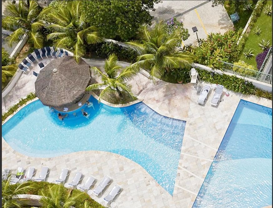 Flat de padrão hotelaria: quarto privativo com banheiro com ducha a gás, varanda com vista para o mar. Toda infraestrutura e serviços, incluindo balsa para atravessar o canal e andar 10min até o Posto 6 da Barra. Enxoval cama e banho padrão hotel+, opção de 1 cama King ou 2 camas. Armário, microondas, cafeteira e chaleira elétricas, frigobar, Wi-Fi, TV a cabo, ar condicionado split. piscina, sauna, academia, quadra de tênis, restaurante, cafeteria, loja conveniência, lavanderia, estacionamento.