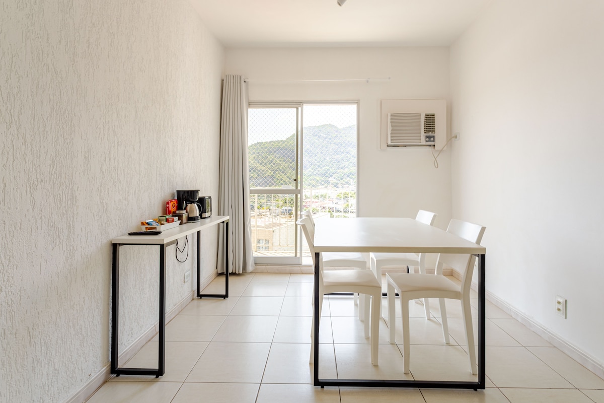 Espaço aconchegante com duas camas de solteiro e uma ótima varanda no Mediterrâneo Flat Barra da Tijuca que está localizado na área central do bairro, de fácil acesso à praia a pé - altura do posto 5/6. Próximo shopping center (Barra Shopping e outros), padaria, mercados, bares, restaurantes e lanchonetes . O Flat conta com Wi-fi, Ar Condicionado, TV Smart, Mini Cozinha com cooktop de indução (uma boca), frigobar, cafeteira, microondas e forno elétrico. O condomínio conta com ampla área de lazer