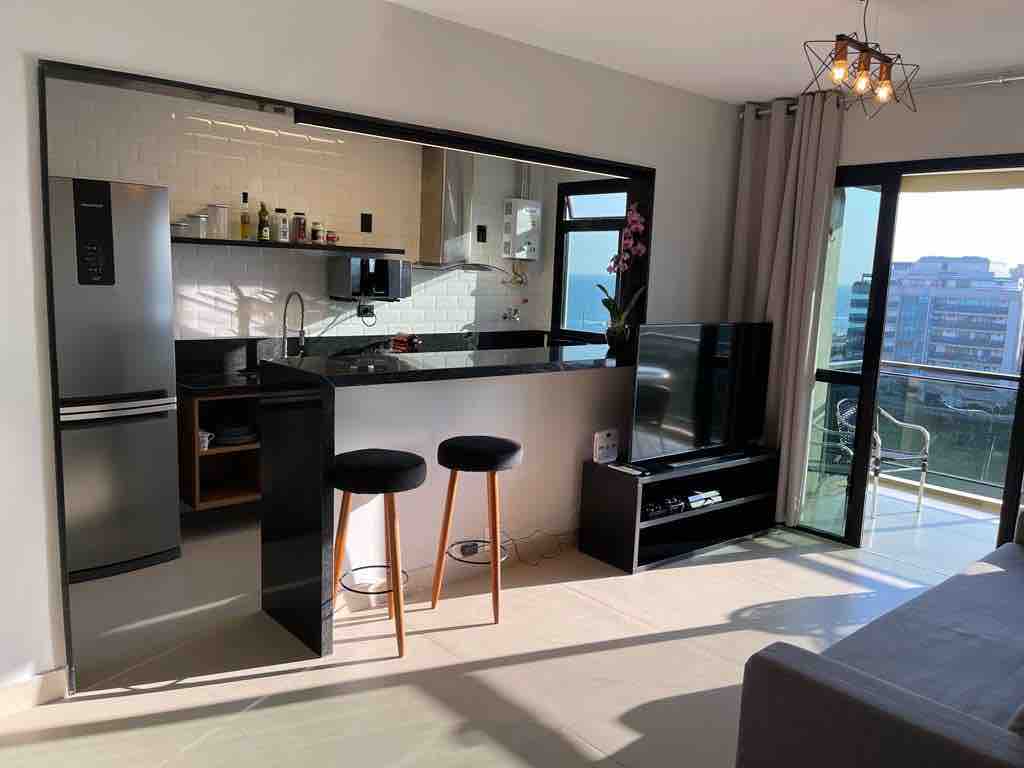 Andar alto com vista deslumbrante de mar, lago e montanhas. Varanda aconchegante. Conforto e hospitalidade. Internet Wifi. Ambiente limpo e agradável. Camas amplas e confortáveis. Roupas de cama e banho fornecidas. Cozinha equipada com fogão, forno, micro ondas, frigobar, louças, copos, xícaras, talheres e acessórios. Quartos com banheiros privativos. Ideal para família. Excelente localização com acesso à praia. Limpeza e arrumação incluso em dias alternados durante os dias de semana.