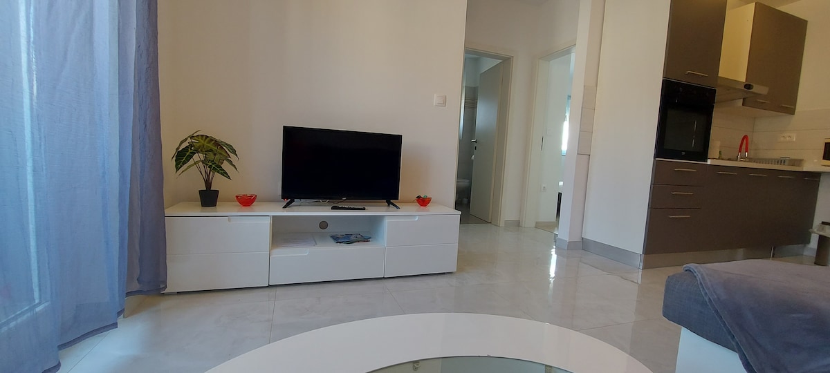 Design Studio apartment is refreshing a sense of both luxury and comfort to make it better than ever. An outstanding opportunity to enjoy and relax in a contemporary design surrounding, based on that well known homely, warm and cosy feeling. Getting a new perspective of a beautiful summer holidays, you will love every second of it. Every summer has a story, this place can make it better... Apartment is located in the center of Medulin, has a small terrace, and private parking 50 m away.