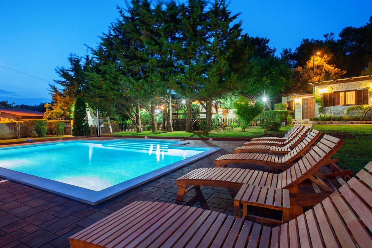 Villa "Casa Mediterana" is located in a very quiet place (800meters from the beach) where you can find peace and relaxation, drink coffee on the terrace and enjoy your meals while watching the beautiful sunset. An outdoor pool with sun loungers, an outdoor kitchen with barbecue and a large terrace, a fenced yard adorned with old olive trees for pets, and a playroom for children.