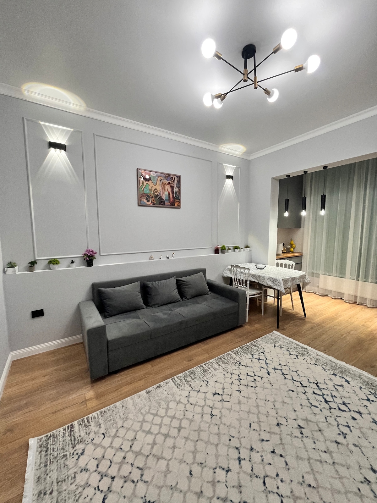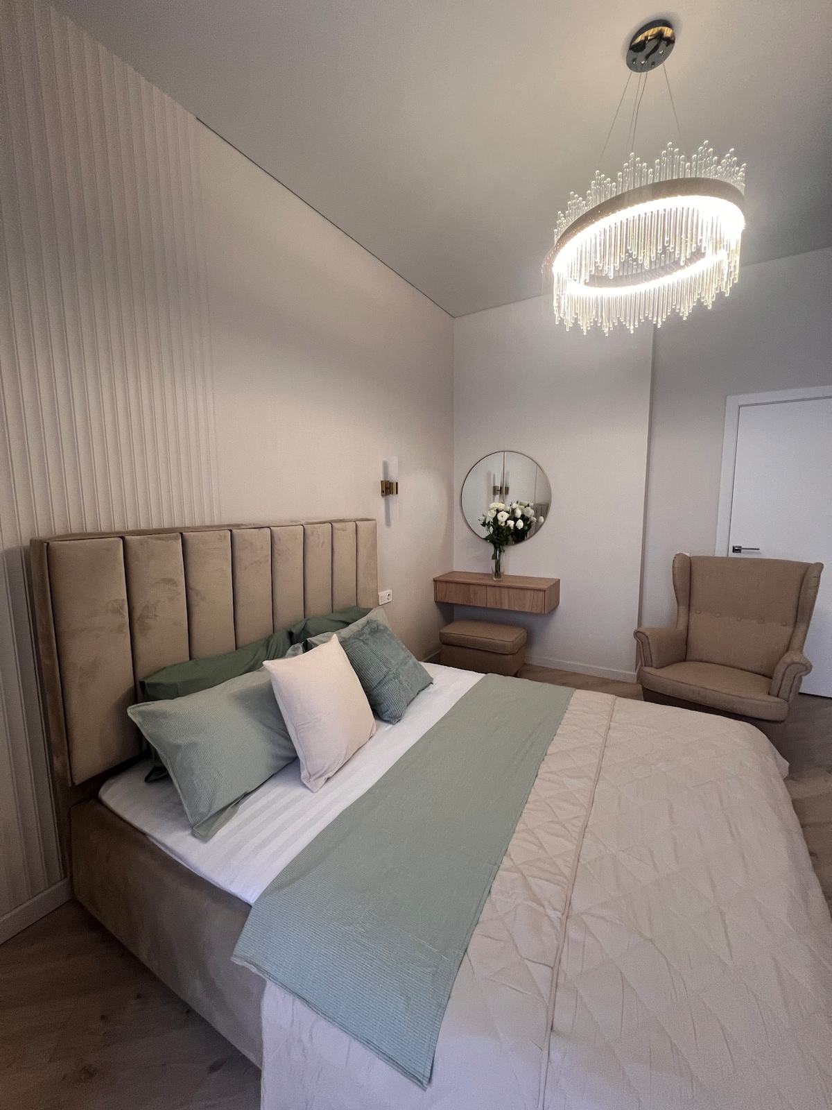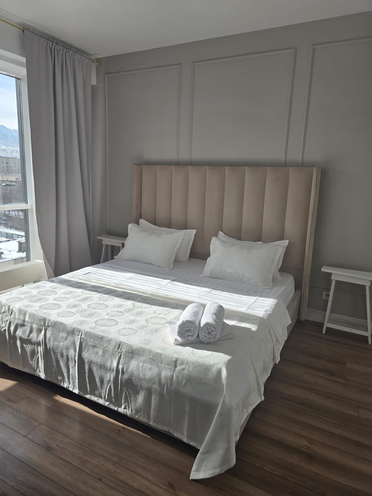 Стильная, просторная 2 комнатная квартира 55 кв. м. Дизайнерский ремонт. Все продумано до мелочей. Красивая спальня с большой кроватью, диваном с кофейным столиком и шикарным видом на горы. Гостиная с большим раскладывающимся диваном, smart tv. Кухня со всем необходимым. Высокоскоростной интернет. Два изолированных санузла и душевая. Бесключевой доступ. Круглосуточная охрана. Уютный тихий двор. Расположена в самом современном районе города. Ближайший торговый центр в 2 минутах пешком.