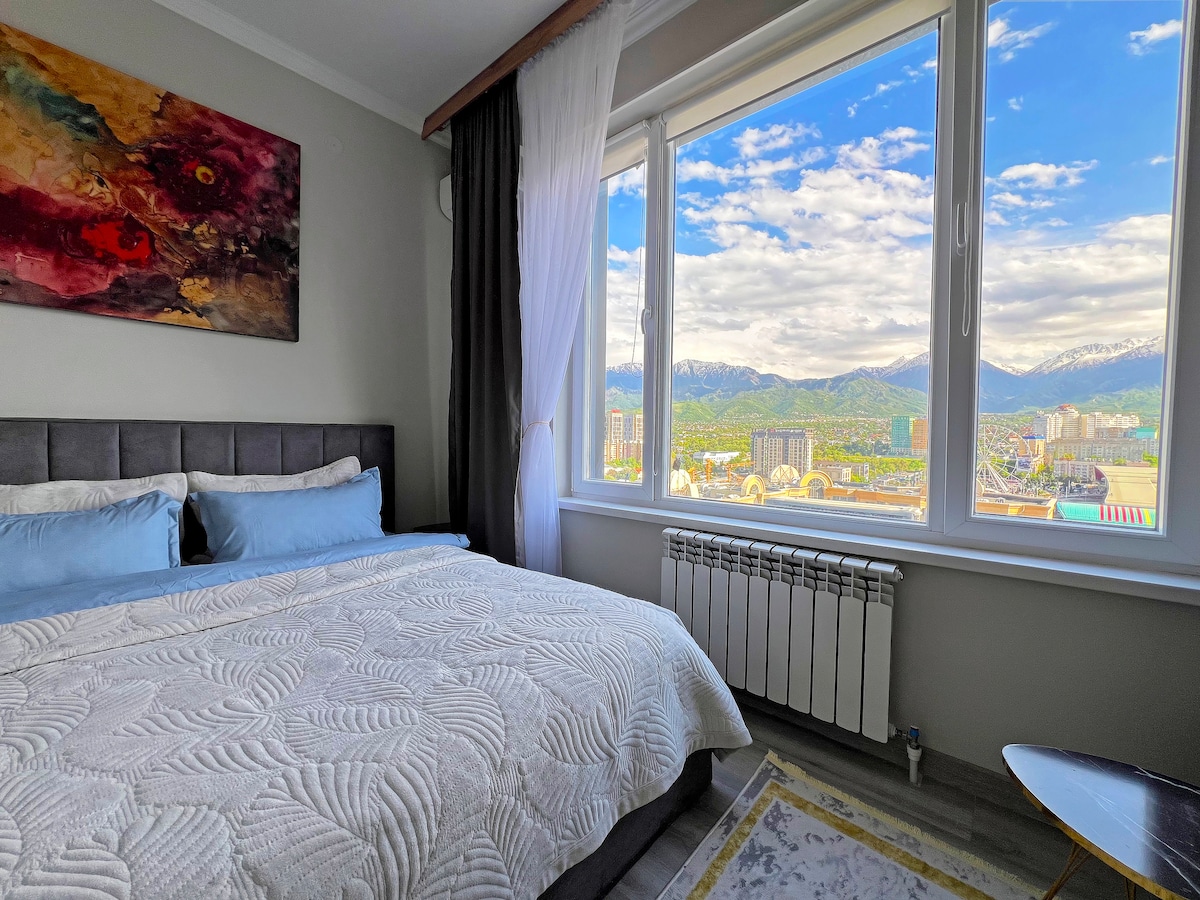 Перезагрузитесь в этом спокойном и стильном месте с шикарным видом на горы в районе ТРЦ Верхняя Мега. Рассвет и закат удивителен ) Вы можете проснуться с красивым рассветом и выйти в Traveller's coffee, URBO или Cofeeboom выпить чашку кофе и начать утро с вкусным завтраком Пройтись в ТРЦ Мега сделать шоппинг и прогуляться вдоль речки Алматинка и дойти до парка Первого Президента
