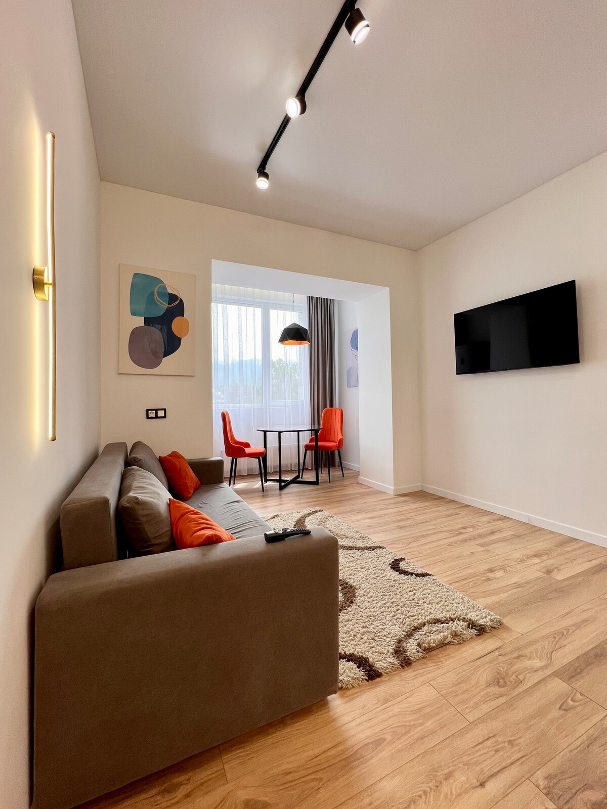 Привлекательная , абсолютно новая квартира в центре города с просторными светлыми комнатами, видом на горы и современным ремонтом. Идеально подходит для арендаторов, ищущих комфортное жилье в удобном местоположении. В непосредственной близости от общественного транспорта, магазинов и торгово-развлекательного центра “Mega”. Готовы к заселению сразу после сделки!