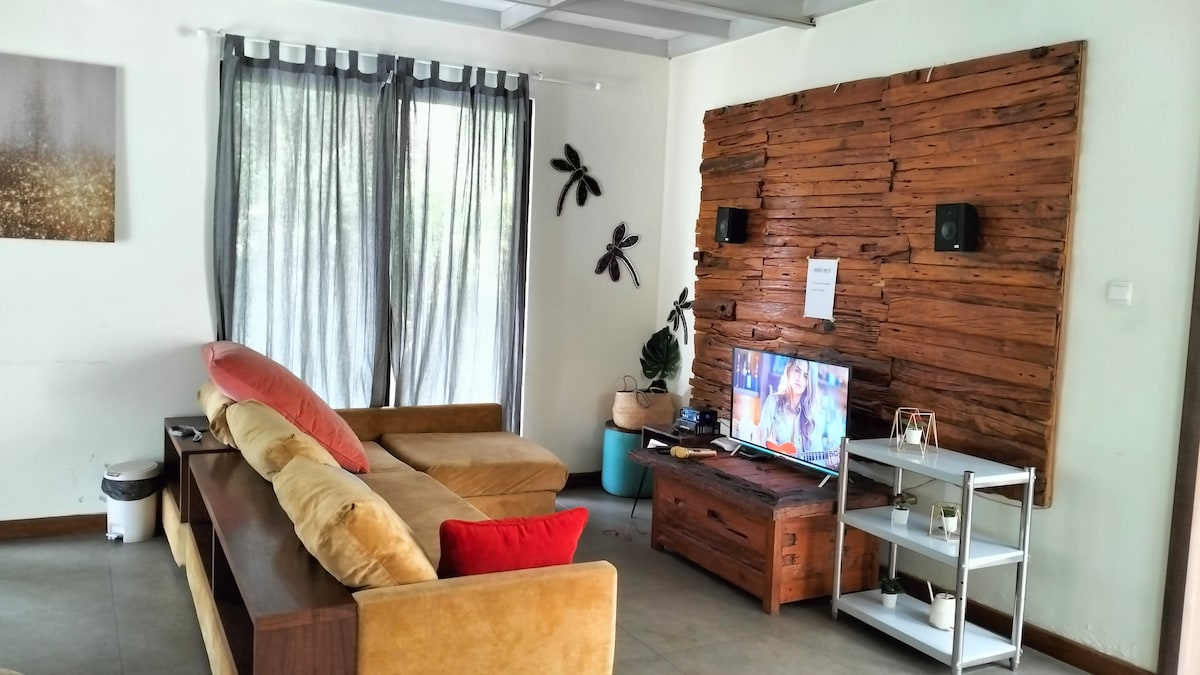Escape the city to this private tropical house with stunning mountain views. Enjoy spacious rooms with large windows, a big terrace, outdoor dining area, billiard table, and fast Wi-Fi. Perfect for families, couples, or remote workers. Surrounded by nature, with spacious parking and secure CCTV. Easy access via alternative Puncak route—your peaceful retreat awaits!