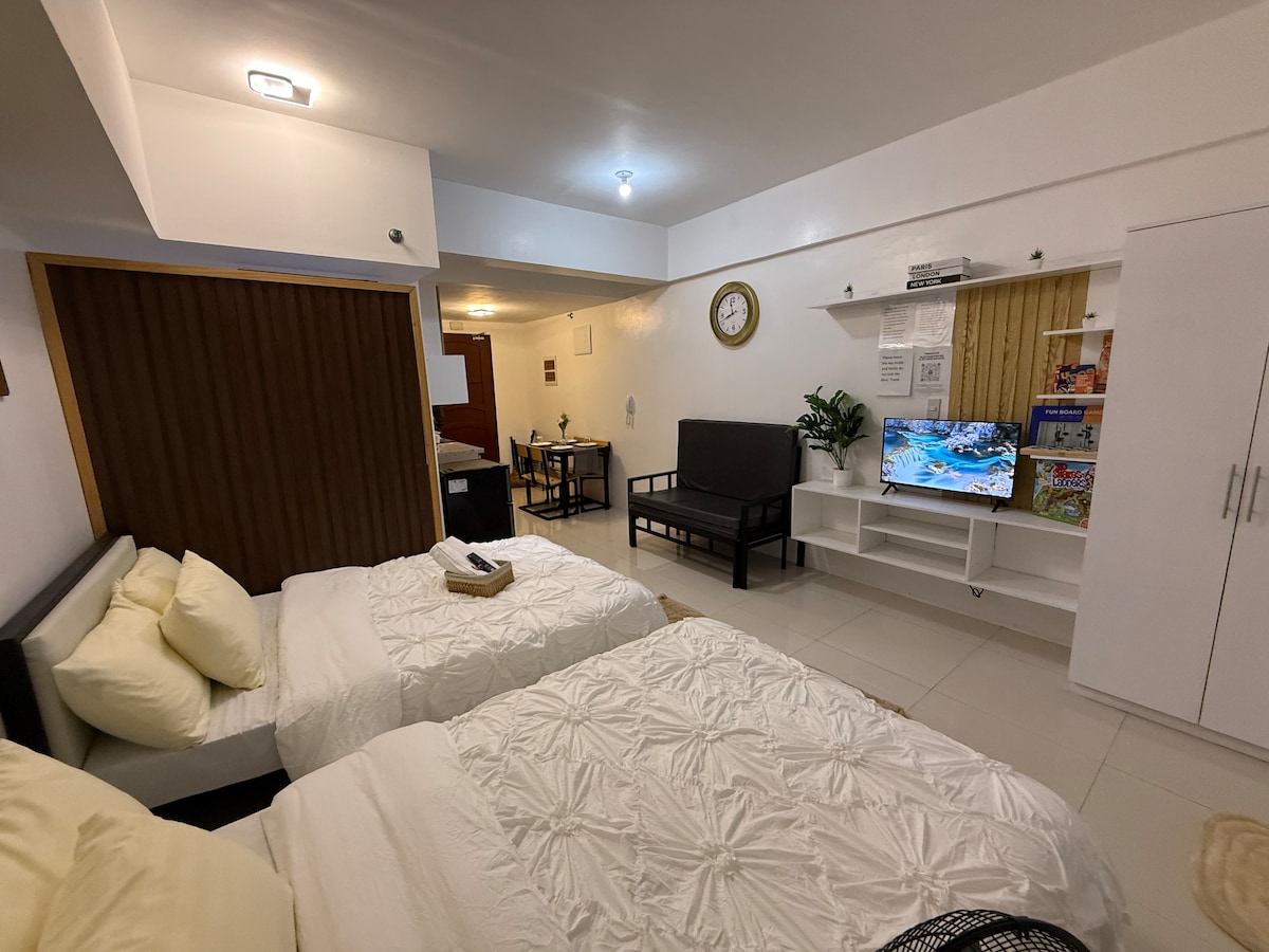 𝐋𝐎𝐂𝐀𝐓𝐈𝐎𝐍: MegaTower Residences IV, Upper Gen Luna, Salud Mitra, Baguio City (Few meters away from Session Road and SM City Baguio.) 𝐔𝐍𝐈𝐓 𝐅𝐄𝐀𝐓𝐔𝐑𝐄𝐒: ▫️WIFI ▫️Smart TV with Netflix ▫️Hotel Style Beds and Beddings ▫️Both and Hand Towel ▫️High Speed Cooler ▫️Refrigerator ▫️Microwave ▫️Rice Cooker ▫️Water Heater ▫️Kitchen Utensils ▫️Slippers ▫️Hot and Cold Shower ▫️Hair Blower ▫️Body Wash, Shampoo and Conditioner ▫️Toilet Paper