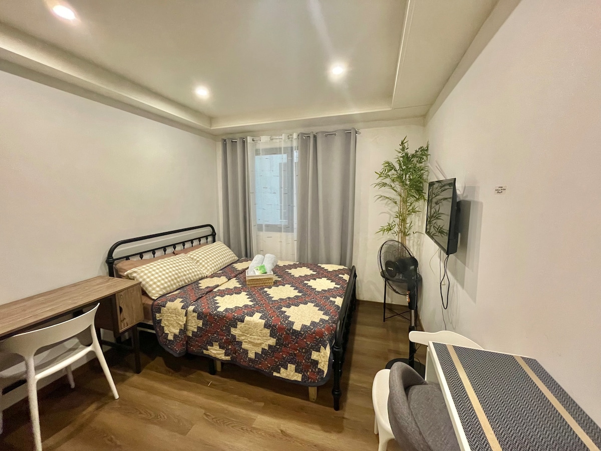 Experience lavishness in each and every corner of this air-conditioned modern and luxurious BrandNew Centrally located Condo unit. Enjoy an incredible and relaxing experience w/ full double-size bed topped with Ikea Duvet covers. Sit back in 2-seater sofa bed while watching your favorite NETFLIX series in 40 Inches TV. Complete cooking and dining utensils. Spacious study area for WFH needs w/ Fiber Internet speed up to 80MBPS.Clean and fragrant T&B w/ hot and cold shower.