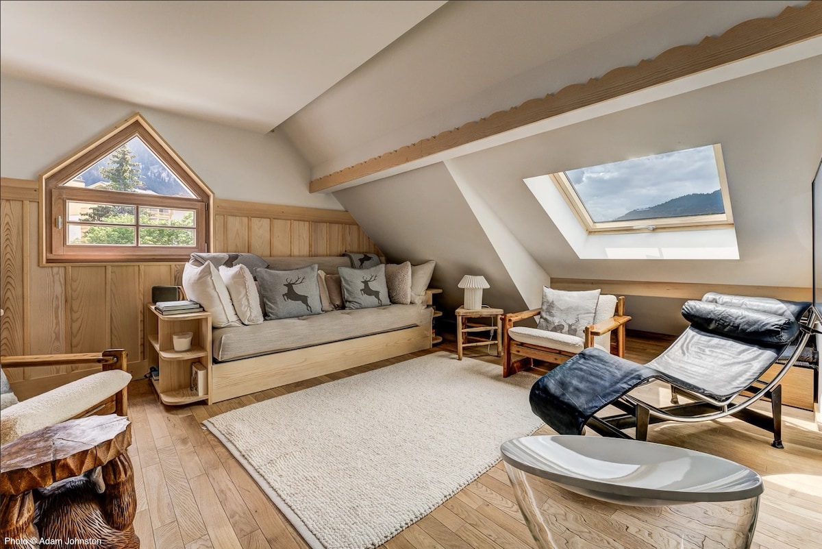 Located at the foot of the Mont d'Arbois skiing area, the apartment is nestled atop the Thelevey ridge with amazing panoramic views, immediate pedestrian access to the ski lifts, ski school and the Golf of the Mont d'Arbois, and the Tennis of the Maeva Club. Walk down to the village by the scenic chemin du Calvaire. Relax and feel the comfort of this spacious and completely remodeled apartment on the top floor of the charming Chalet Griffon.