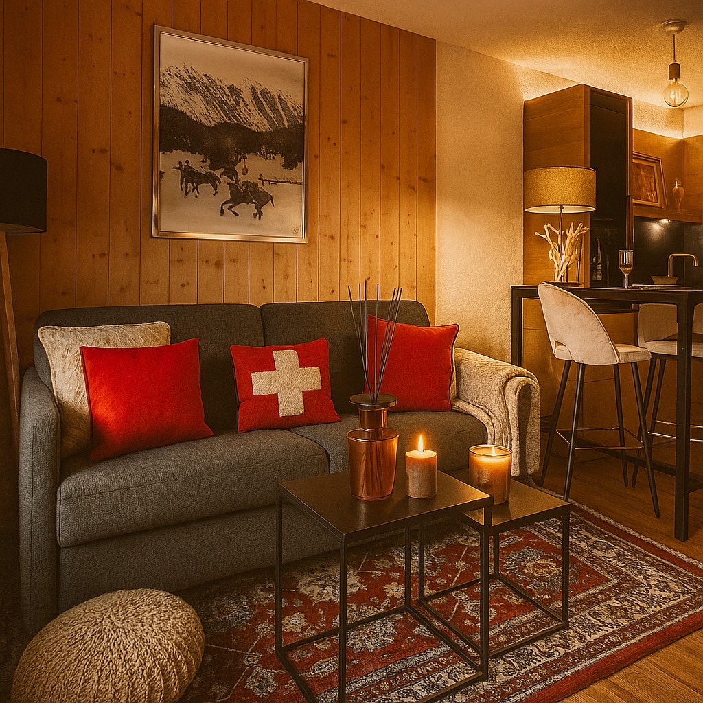 Black Lodge est un appartement haut de gamme entièrement renové, au calme et tout proche du centre du village. A 10min à pied du centre du Village et des remontées mécaniques du Jaillet, 8min du Palais, l'appartement est idéalement situé. Entre design et atmosphère cosy, son salon cocooning et sa douche à l'italienne version spa sauront vous séduire, pour un séjour tout confort dans l'un des plus beaux villages de France.