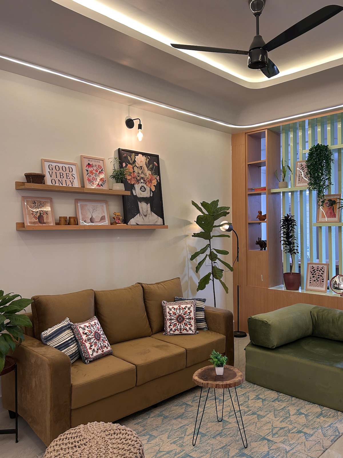 Step into a warm and thoughtfully designed 2BHK retreat in Shillong, styled with soft earthy tones, handcrafted wooden furniture and cozy boho accents. The apartment offers a spacious living room, serene bedrooms with hotel-style bedding and a charming dining nook with a live-edge wooden table. Soft lighting, curated décor and peaceful surroundings make this the perfect space to relax, unwind and feel completely at home. Perfect for couples, families or anyone seeking a peaceful mountain escape.