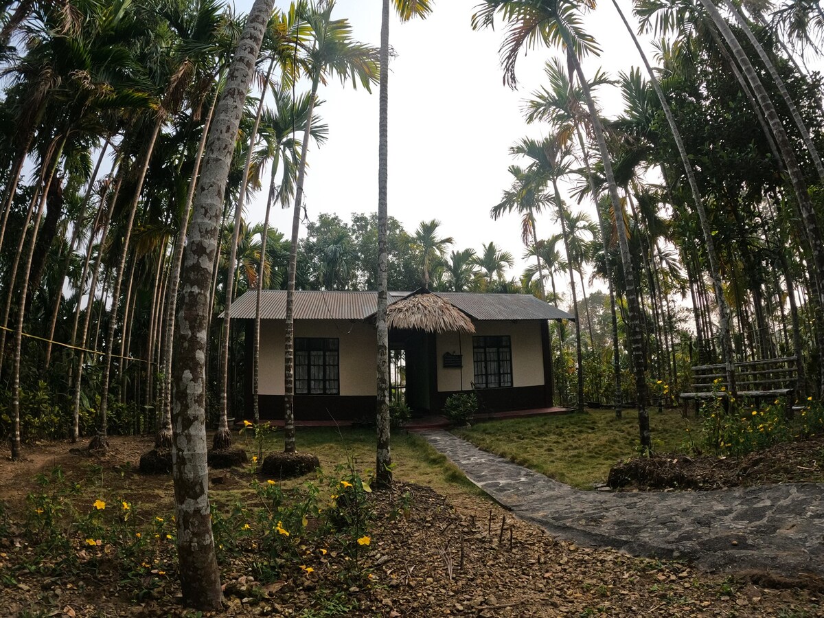 Book a bedroom on the 1st floor inside a farm to have a good time with friends and family. Peace out with nature and animals not far away from Guwahati. End your day with souka-cooked food and start your day with farm-fresh milk. We are a pet and couple-friendly place. We have a bonfire place you can light up a bonfire and have a few drinks.There is a villa too inside the farmhouse for a bigger crowd and a separate bedroom too. For booking with two or three people only one floor will be provided