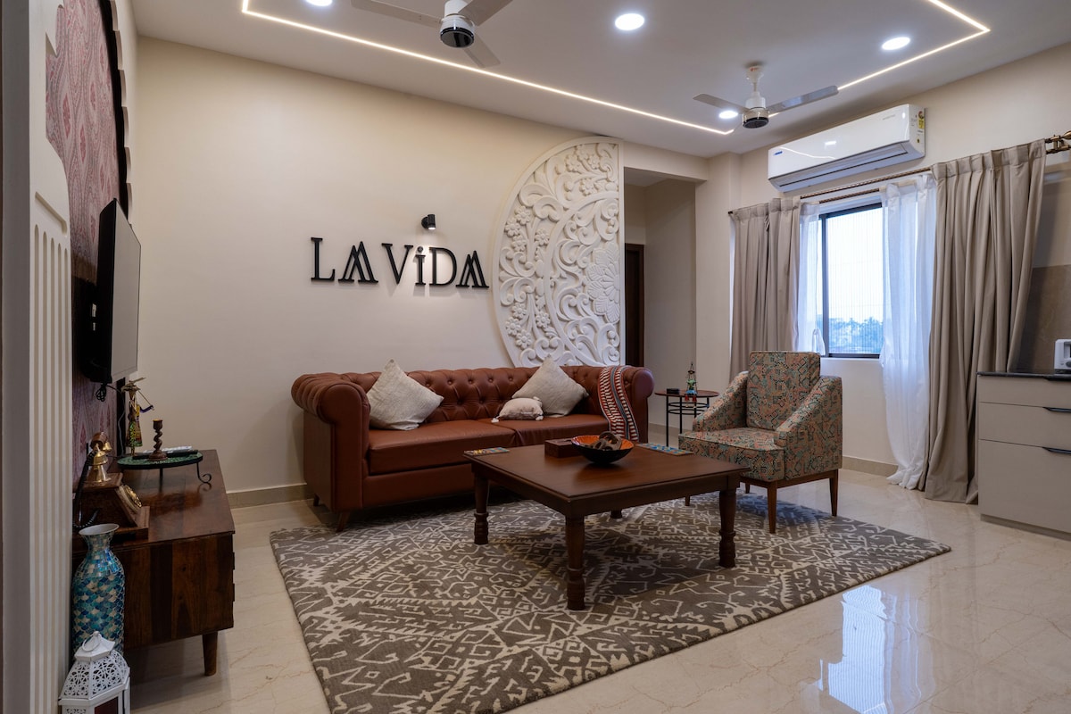 Inspired by Moroccan warmth and artistry, Breeze is a 2BHK that feels rich, cozy, and full of character. Arched details, textured elements, and warm hues bring a sense of escape within the city. Situated on the first floor, it’s perfect for guests seeking a stay that feels immersive, intimate, and distinctly different ● 5 minutes from the airport ● 24×7 caretaker support ● Breakfast available at an additional cost ● Fully equipped kitchen ● Air-conditioning in all areas ● Panoramic views