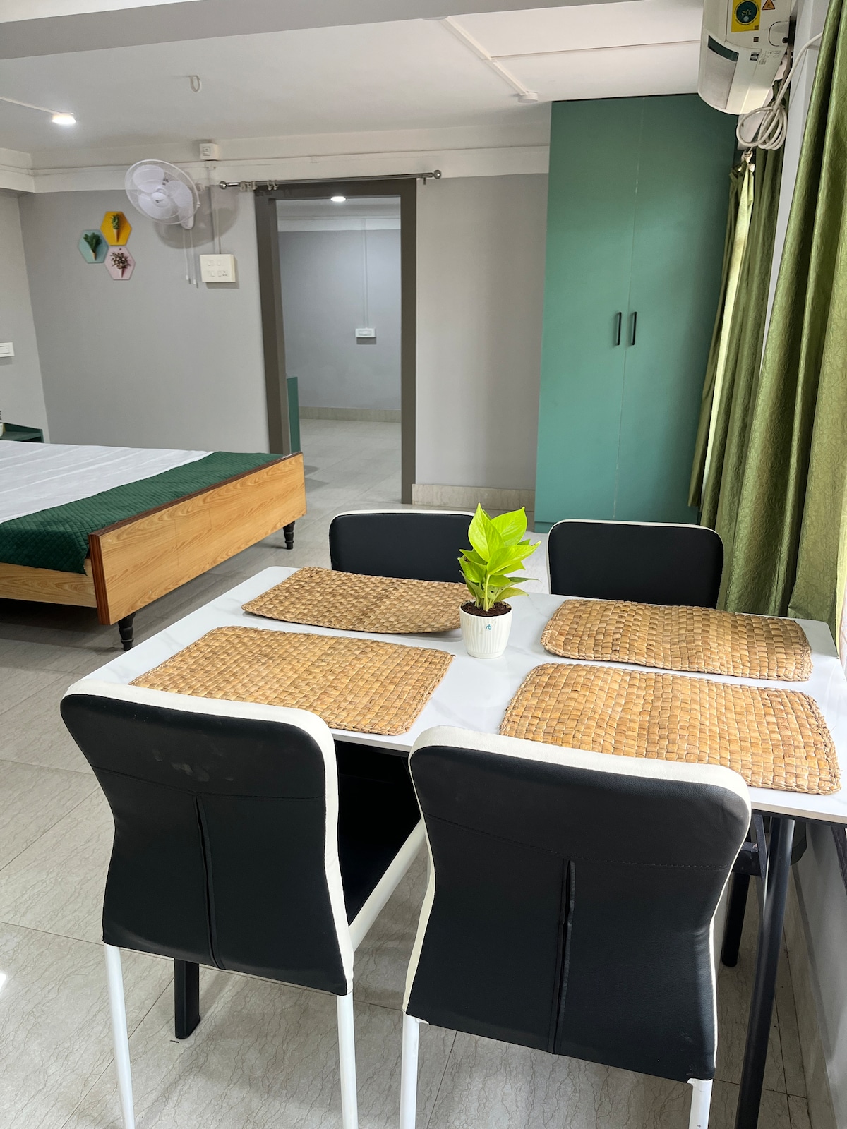 Welcome to our cozy 1 RK studio—perfect for solo travelers or couples seeking comfort and convenience. The room includes a snug double bed, a compact kitchen with essential cookware, and a private bathroom. Located in a peaceful neighborhood close to the airport and Ecom Tower, you’ll have easy access to markets, cafes, and transport. Ideal for work trips or quick getaways, this homely space offers everything you need for a relaxed and memorable stay.