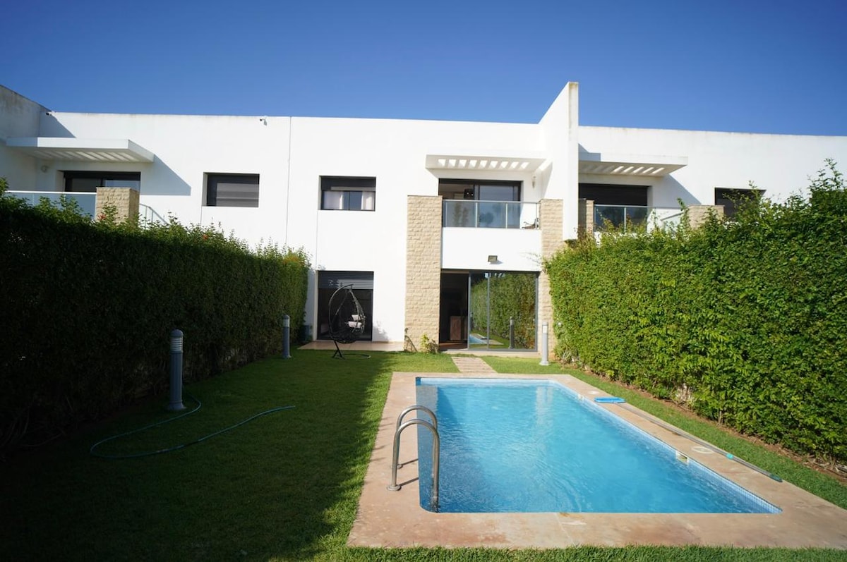 Bienvenue à la magnifique villa de la Plage des Nations à Rabat ! Cette somptueuse villa vous offre une expérience de séjour exceptionnelle avec ses caractéristiques uniques : - Emplacement de rêve À moins de 100 mètres de la plage -Espace élégant à deux étages - Confort moderne - Jardin et piscine - Vue panoramique sur le terrain de golf - Cuisine équipée - Parking gratuit - Sécurité 24/7