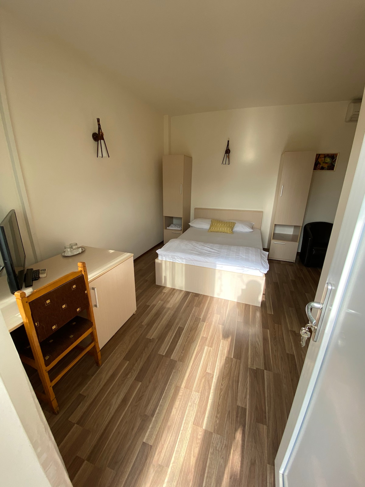 G&A Luxe Apartment Central welcomes you in the heart of Târgu Jiu, just steps away from the Brâncuși Axis on Heroes’ Avenue. Located on the 1st floor, in a quiet yet central area, with private, video-surveilled parking. A modern and stylish 2-room apartment with a spacious bathroom, balcony, and fully equipped kitchen. Amenities: high-speed Wi-Fi, Netflix, Xbox, air conditioning, and self check-in via Smart Lock. We guarantee you’ll feel at home, with all the comfort and style you deserve.