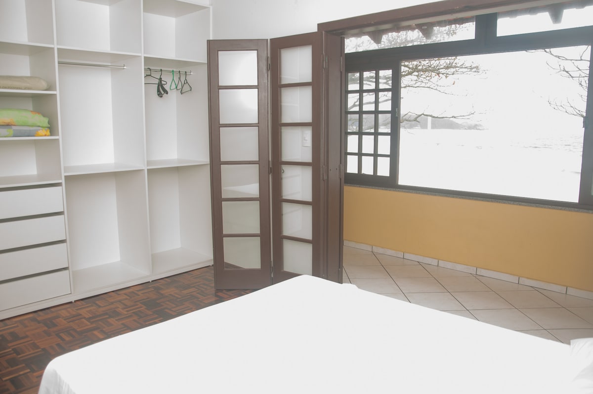 Linda casa no alto com entrada privativa, com vista para o mar do Caixa d'Aço na vila de pescadores Araçá em Porto Belo. Próximo a passeios de escuna, restaurante Araçá Silvestre, Mercado Marques, praia Araçá, praia Caixa d'Aço, praia estaleiro. Possui garagem coberta para 2 carros . A casa possui 2 quartos um com cama de casal e outro cama queen e espaço nos quartos para colocar 1 colchão de solteiro. Banheiro amplo c ducha grande.