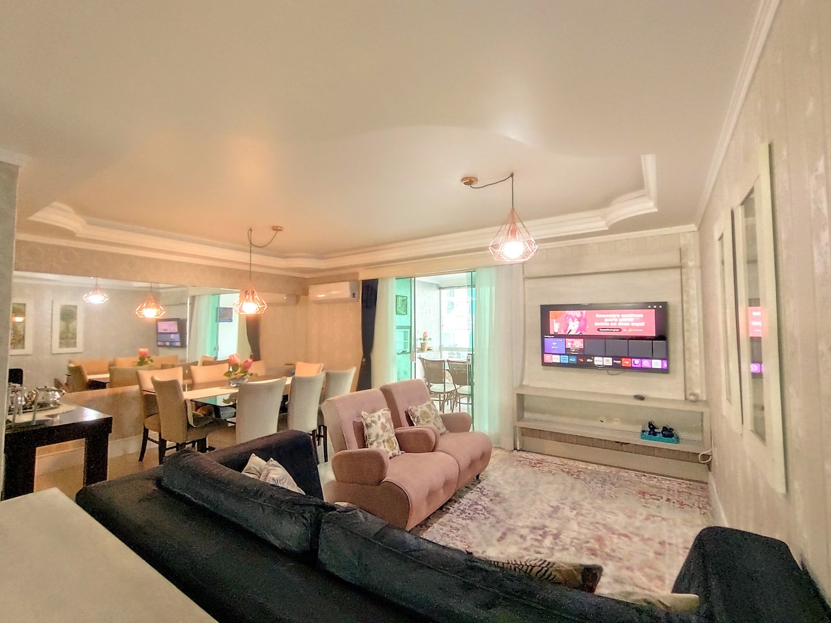 Apartamento amplo e aconchegante, totalmente de frente ao mar, conta com garagem privativa para dois carros, cozinha totalmente equipada, máquina de lavar roupas e Wifi gratuito. Localizado na melhor região de meia praia. Com restaurantes, padaria 24 horas, mercados, bares, lojas e muito mais a alguns minutos a pé. Sem dúvida uma das melhores opções para férias em família ou em amigos. Acesso direto a praia, apartamento pés na areia.