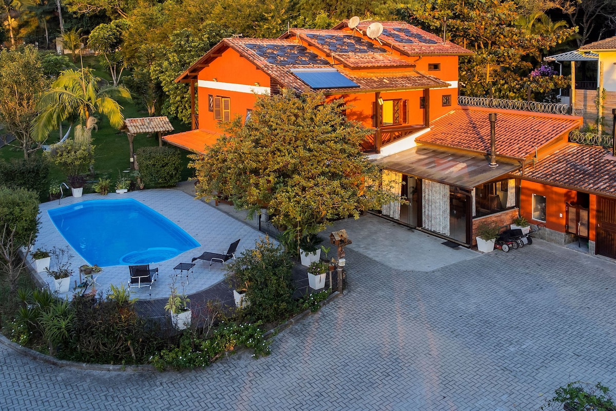 House with a pool in Florianópolis, located in the North of the Island and just 15 minutes from Jurerê International. Ideal for families and groups, hosting up to 18 guests. The property includes two private houses, a pool, lake, sand court, orchard, and a large green area. All rooms have air conditioning, plus bed linens, a fully equipped kitchen, fireplace, Wi-Fi, and parking for up to 10 cars. Close to supermarkets and restaurants, offering comfort, nature, and convenience.