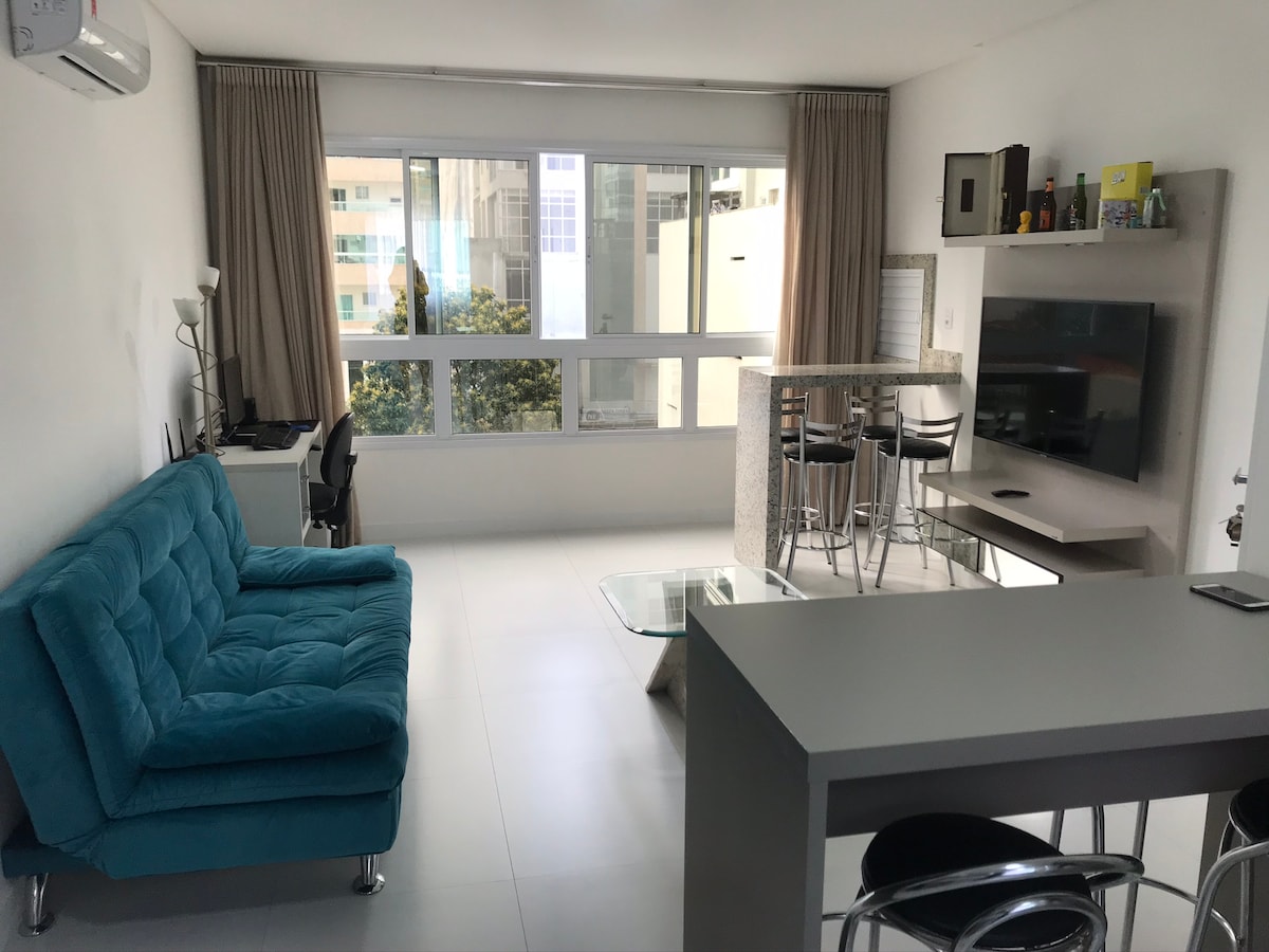 Complete experience in Meia Praia! Just steps from the beach, this apartment was designed for those who value comfort and location. It features a bedroom with a queen bed, living room with Smart TV, equipped kitchen, dining area and balcony with city view. Full amenities include a heated pool and jacuzzi on the rooftop, gym and game room. Close to cafés, restaurants, markets and Hard Rock Café. Book now and enjoy special days on the Santa Catarina coast.