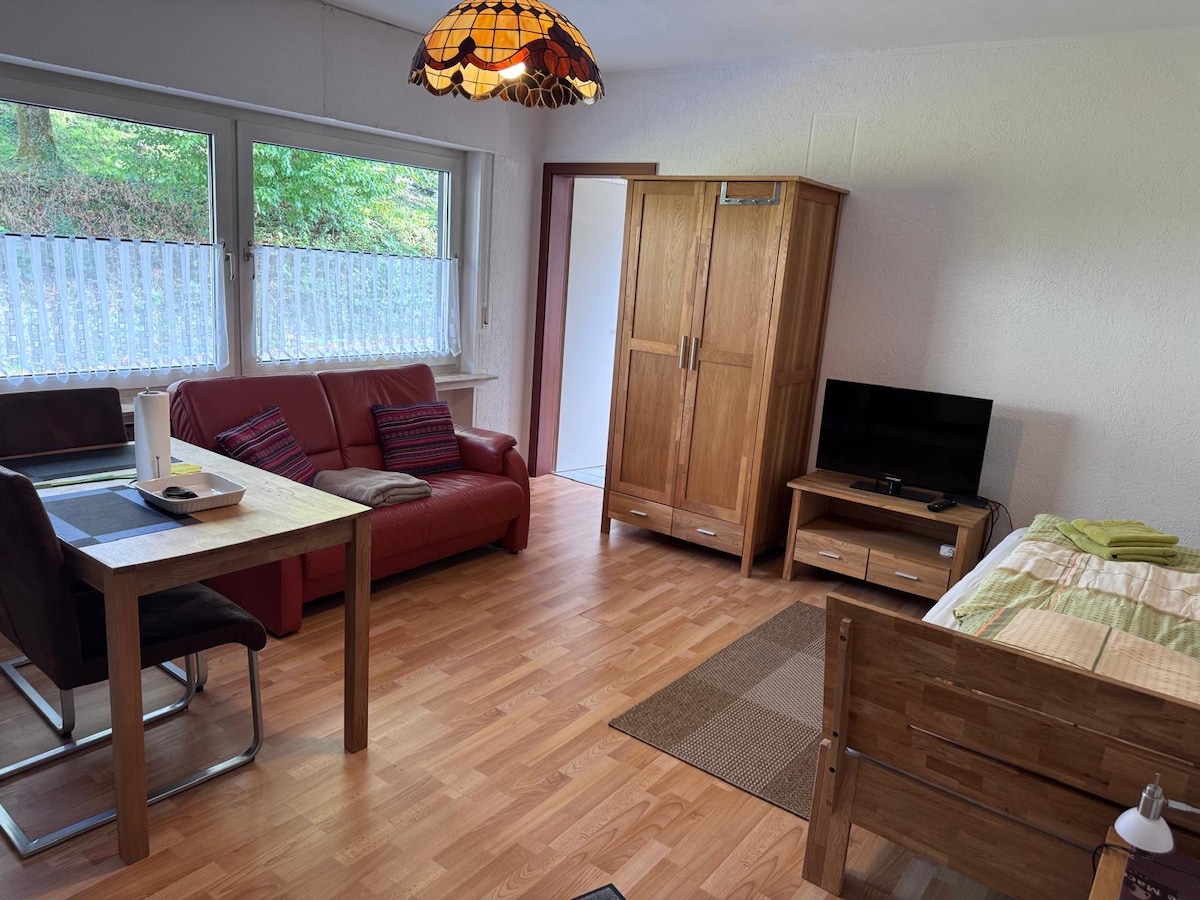 Schickes & schön eingerichtetes Studio mit Terrasse und Garten für 2 Personen 35qm mit Terrasse und direktem Gartenzugang Großes Doppelbett 1,80x2,00m Ruhig gelegen in privatem 2 Familienhaus Parkplätze direkt am Haus Kühlschrank, Kaffeemaschine, Wasserkocher, Geschirr, Küchenrolle (keine Kochgelegenheit) Inkl. Handtücher und Bettwäsche Hunde ab 40cm-5€ pauschal Ruhige Straße, Blick ins grüne, Wandermöglichkeiten direkt ab Haustür, Bäcker 5 Minuten entfernt Aktivitäten: Elspe Festival, Bigge