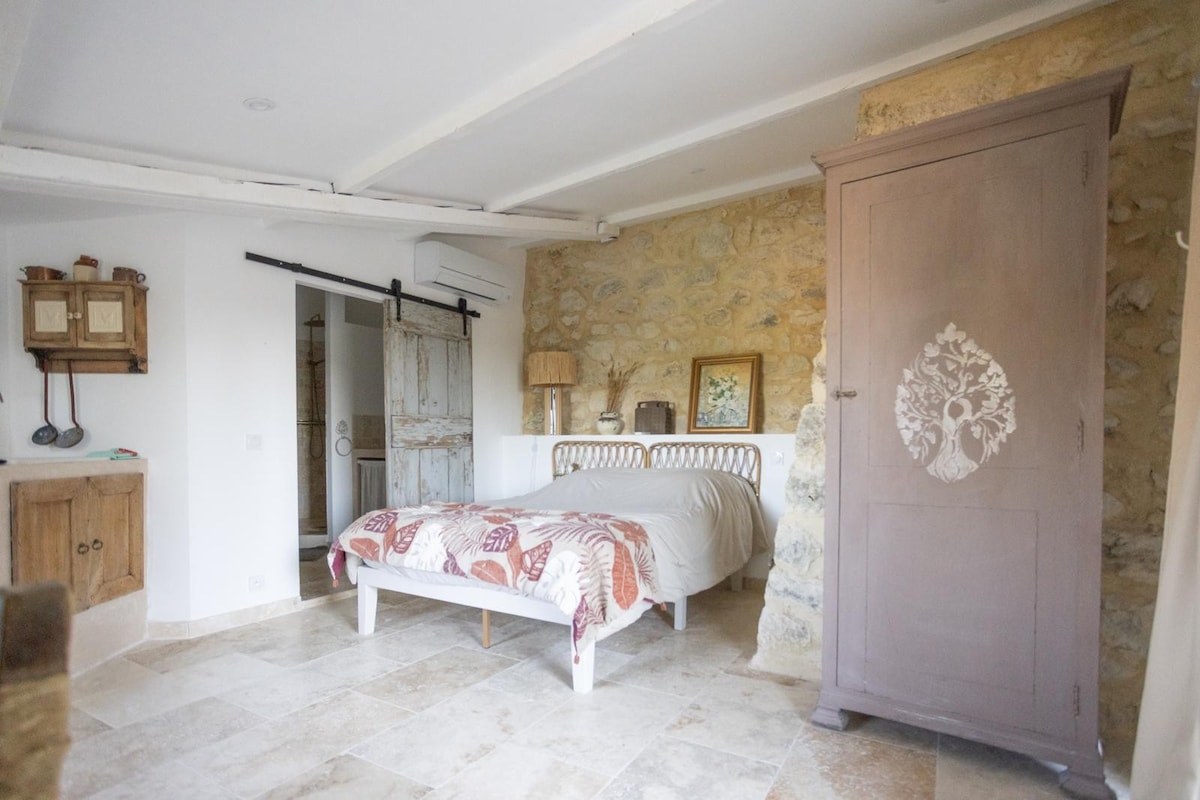Envie d'une escapade en amoureux ? d'un endroit insolite ? Bienvenu dans notre Mas du XVIII ème siècle entièrement rénové pour vous offrir un séjour proche de la nature. Notre appartement crée dans la fraicheur de voutes en pierre vous fera vivre un séjours original. De sa terrasse ombragée vous profiterez de la vue sur les plantations d'oliviers et de chênes truffiers. Et vous serez accueillis aussi par Lulu & Griotte nos deux chiens qui accompagnent Nadine dans sa récolte de truffes.