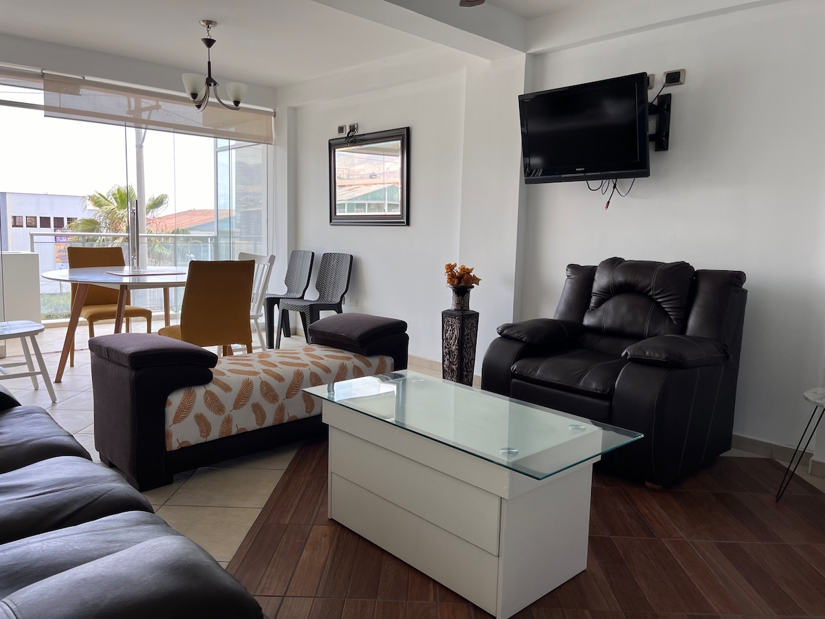 Moderno minidepartamento AMOBLADO Ubicado a sólo 5 minutos (EN AUTO) del centro de Mollendo y a 7 minutos (EN AUTO) de Catarindo Cuenta con 01 habitación amplia con DOS CAMAS de 02 plazas, TV de 40¨ y baño completo con ducha y agua caliente las 24 hrs. Área de cocina con electrodomésticos, mesa de comedor y sala de estar con ½ baño, sofá y TV de 40¨ INCLUYE: Agua potable, luz, WiFi, uso de COCHERA y terraza compartida - Permite alojar un MÁXIMO de cuatro (04) personas entre adultos y niños