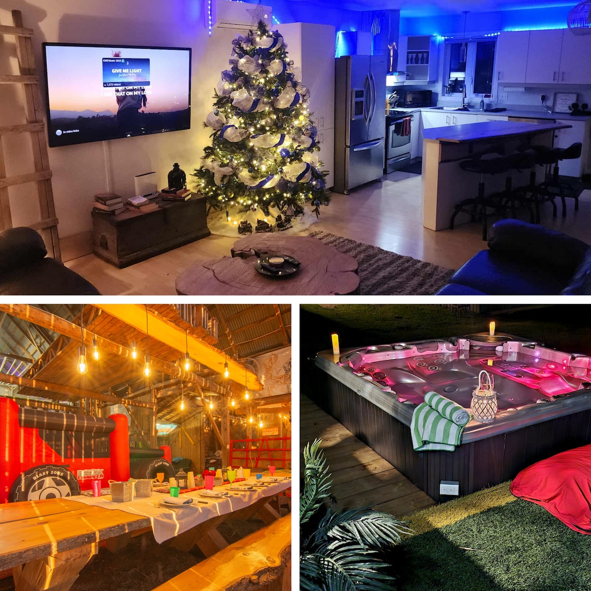 Agathe’s Cottage, A unique relaxing experience 1 hour from Montreal. Large, very warm 3-storey chalet located 2 minutes walk from Lake Bastien. Very well equipped cottage, 3 bedrooms, 2 bathrooms, spa, fireplace in the living room and outdoor fire pit (unlimited wood included/fires ready to be lit on arrival), huge exotics interior plants, game room with 20 games vintage Street Fighter arcade, hot tub, ideal with friends and family! At Agathe’s Cottage, every moment is memorable.