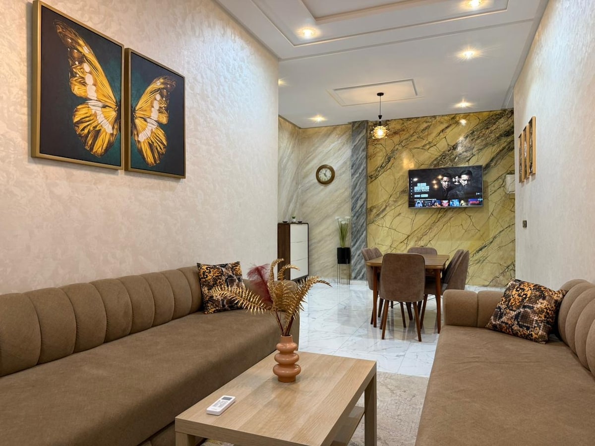 Bienvenue dans cet appartement entièrement rénové, situé à proximité immédiate de la grande gare de Meknès, idéal pour les voyageurs à la recherche de confort et de praticité. Profitez d’un espace lumineux et épuré, parfait pour vous détendre après une journée bien remplie • 🚠avec ascenseu • 📺Netflix , wifi , Iptv . ✈️ 🚘un service de location de voiture ou de transfert aéroport en option est disponible, demandez 🚫 interdit pour les couple marocains non mariés 📩 si vous avez besoin d’autre chose