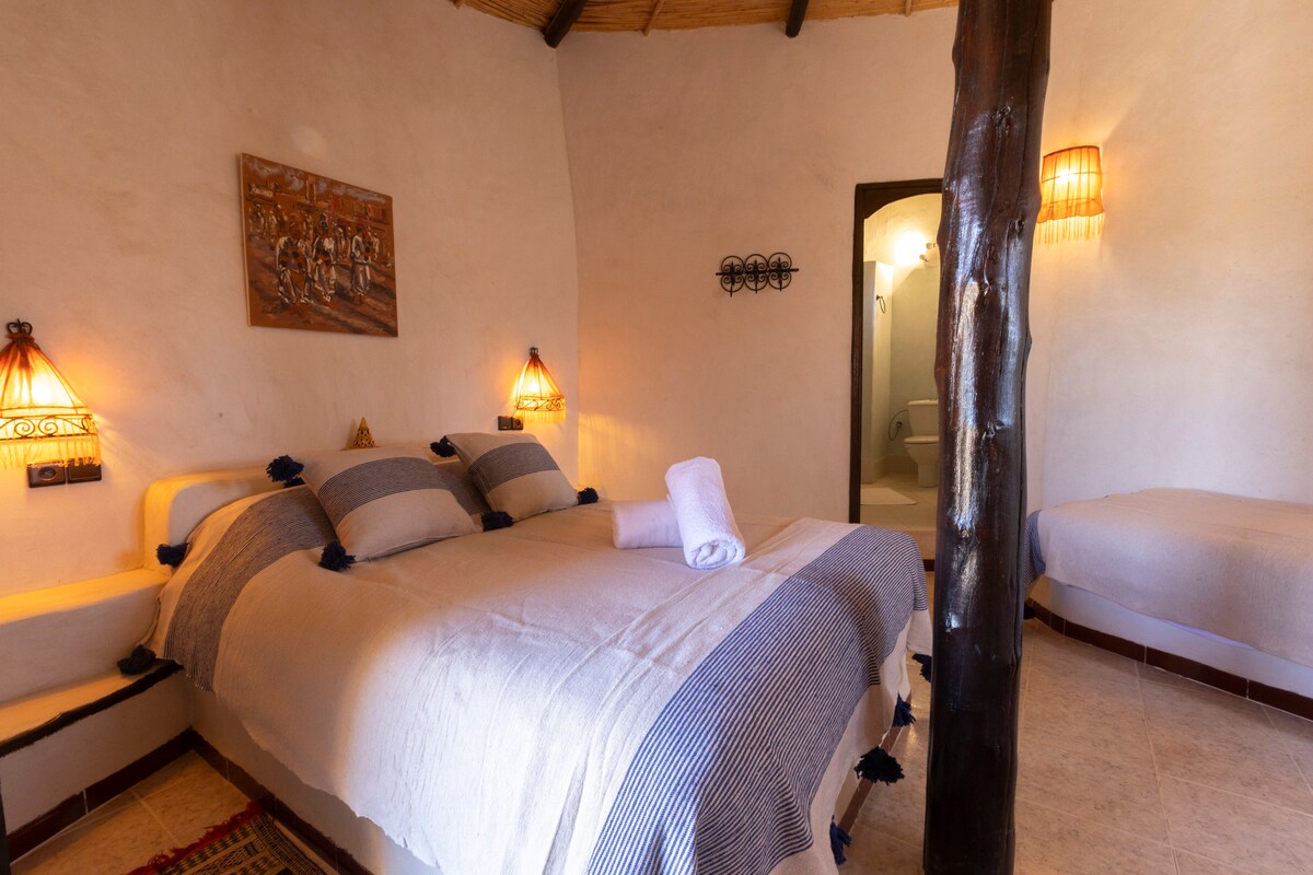 À quelques pas de la piscine de notre auberge, cet appartement cosy au style traditionnel est parfait pour un séjour authentique à Merzouga. Il comprend une cuisine équipée, une chambre confortable, un salon chaleureux et deux salles de bain pratiques. Bien qu’intimiste, il offre tout le confort nécessaire pour un séjour reposant. Profitez d’un cadre paisible et d’une ambiance unique au cœur du désert.