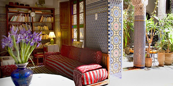 This lovely Medina house has three double bedrooms with private bathroom. The approximate price for a room is 35 euros per night. To make a booking and to check availability and prices contact the owner, Steve, directly. A beautifully restored traditional house. The perfect location and the relaxed friendly atmosphere and great service makes this the perfect base for discovering the Medina and the surrounding area. Dar Houdou is located on a quiet street in between the two main market streets of Talaa Sghira and Talaa Kabira. Only a few minutes walk from taxis, cafes and restaurants of the Batha and the Bab Boujeloud (blue gate) areas. Two of the bedrooms are on the first floor of the house overlooking the inner courtyard and the third is on the terrace. The house has the following: An inner courtyard A traditional salon with a library, a CD player . A lovely eat in kitchen Two terraces with good views The price includes breakfast, and WIFI. We can organise guided walking Medina tours and day trips to the Middle Atlas region and Meknes and the Roman ruins at Volubilis. Just ask for further details and prices.