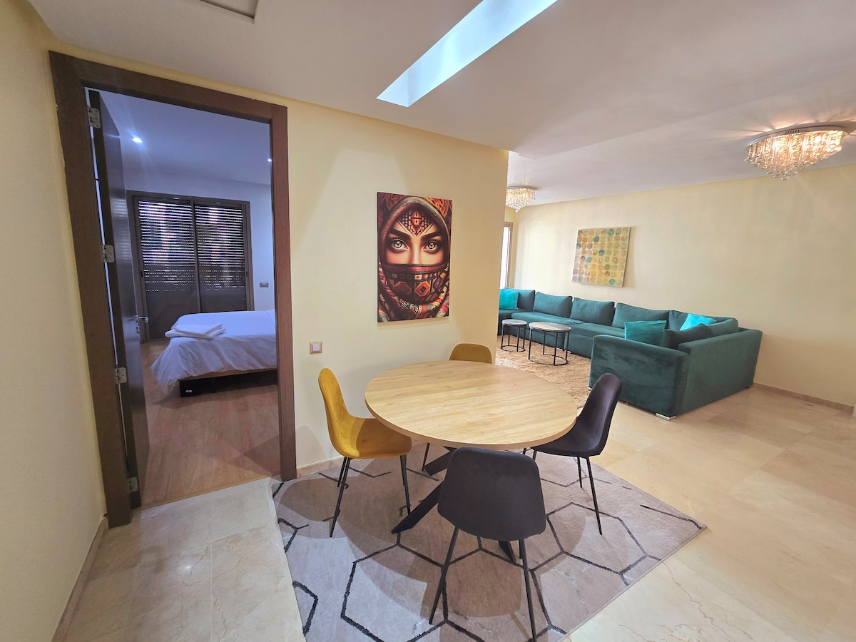 Découvrez notre charmant appartement en style de chalet, idéalement situé en plein cœur de la ville. À seulement 5 minutes du centre-ville, ce logement élégant offre une vue imprenable sur les magnifiques champs et forêts du Moyen Atlas. Parfait pour un séjour confortable et mémorable, notre appartement allie confort moderne et charme rustique pour vous garantir une expérience inoubliable. Réservez dès maintenant pour découvrir ce havre de paix.