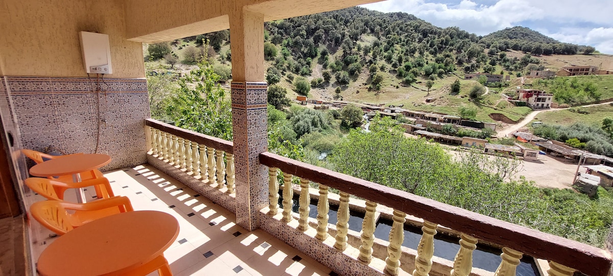 Venez découvrir la richesse de la nature du moyenAtlas . depuis mon locale vous verrez tout le site entouré d'une Forêt de chaîne et des fontaines d'eaux qui jaillit entre les rochers .a côté une magnifique cascade..je propose aussi à mes invités des plas variés une nourriture locale des tagines de truites. le poulet de ferme des tajine avec des légumes bio d'une cultivation locale des salades.des olives.des jus..du café ...