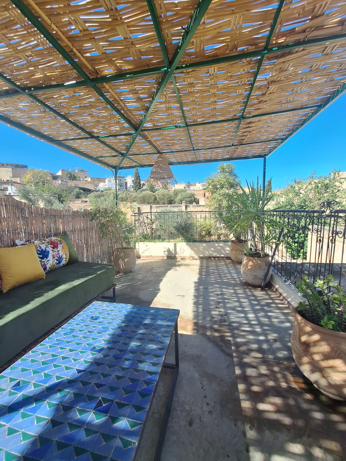 Dar Bennani is a beautifully restored 4-bedroom courtyard house in the heart of Fez Medina, Morocco’s ancient capital. This historic gem features vibrant traditional decor, grand proportions and contemporary comforts. But it has the 'lived in' feel of a home, not a hotel. The large roof garden offers stunning views of the Medina and hilltops. Located minutes from bustling souks, famous markets, and top restaurants, Dar Bennani is the perfect base for exploring Fez’s rich history and culture.
