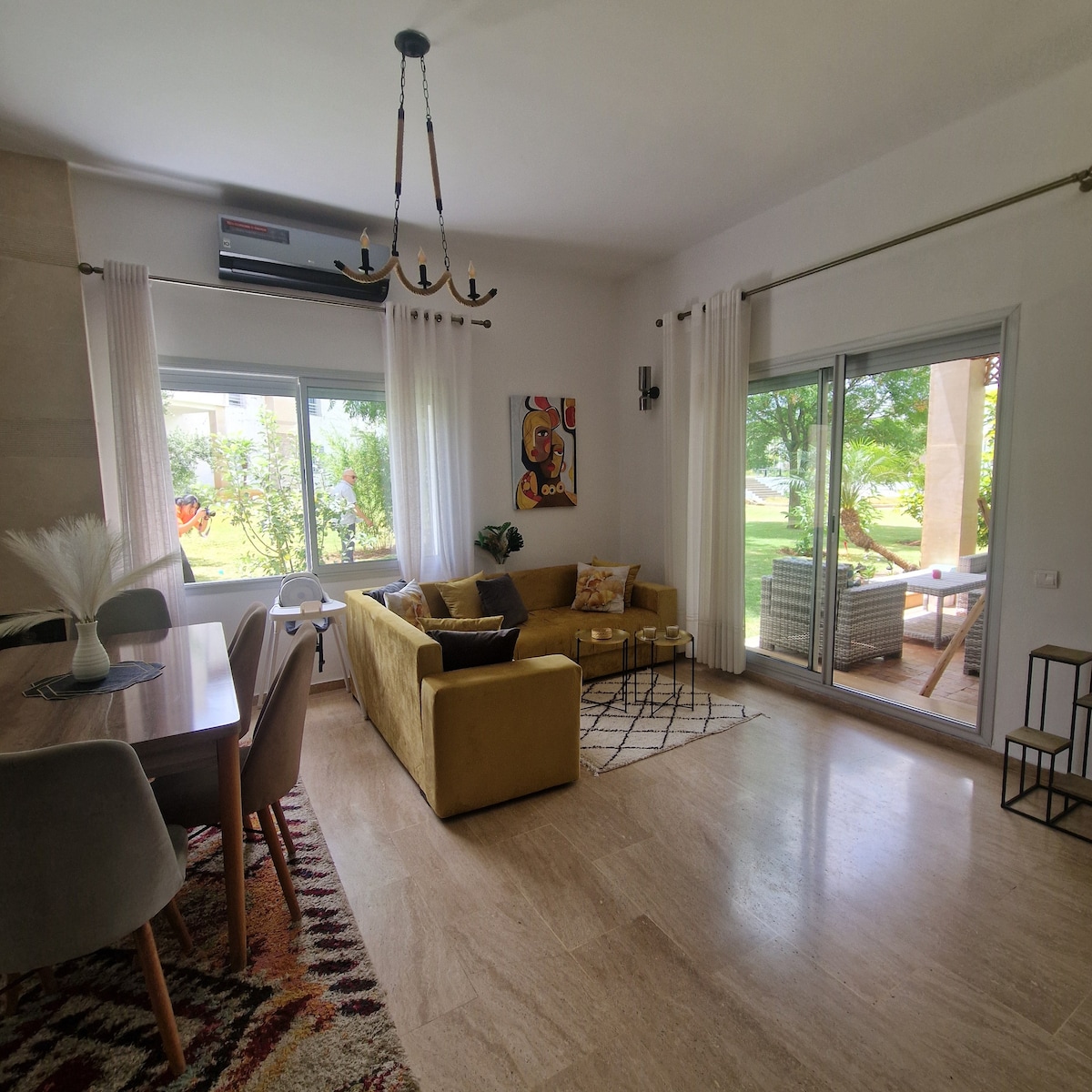 Découvrez votre coin de paradis dans un résidence sécurisée avec camera et gardien. L’hypercentre n'est qu'à quelques instants. - Villa lumineuse et moderne - un jardin avec piscine et terrasse - A 20min de l’ancienne médina - A 10mn du centre ville - À 2 min des magasins … Besoin d’une voiture ? Tarifs avantageux pour la location d’une voiture. Cuisinière disponible sur demande. - villa 420 m² - au RDC 3 grands espaces salons et une cuisine équipée. - 5 chambres et 4 SDB - Parking