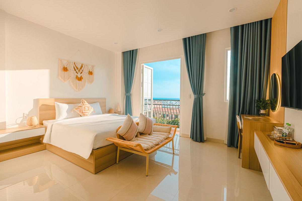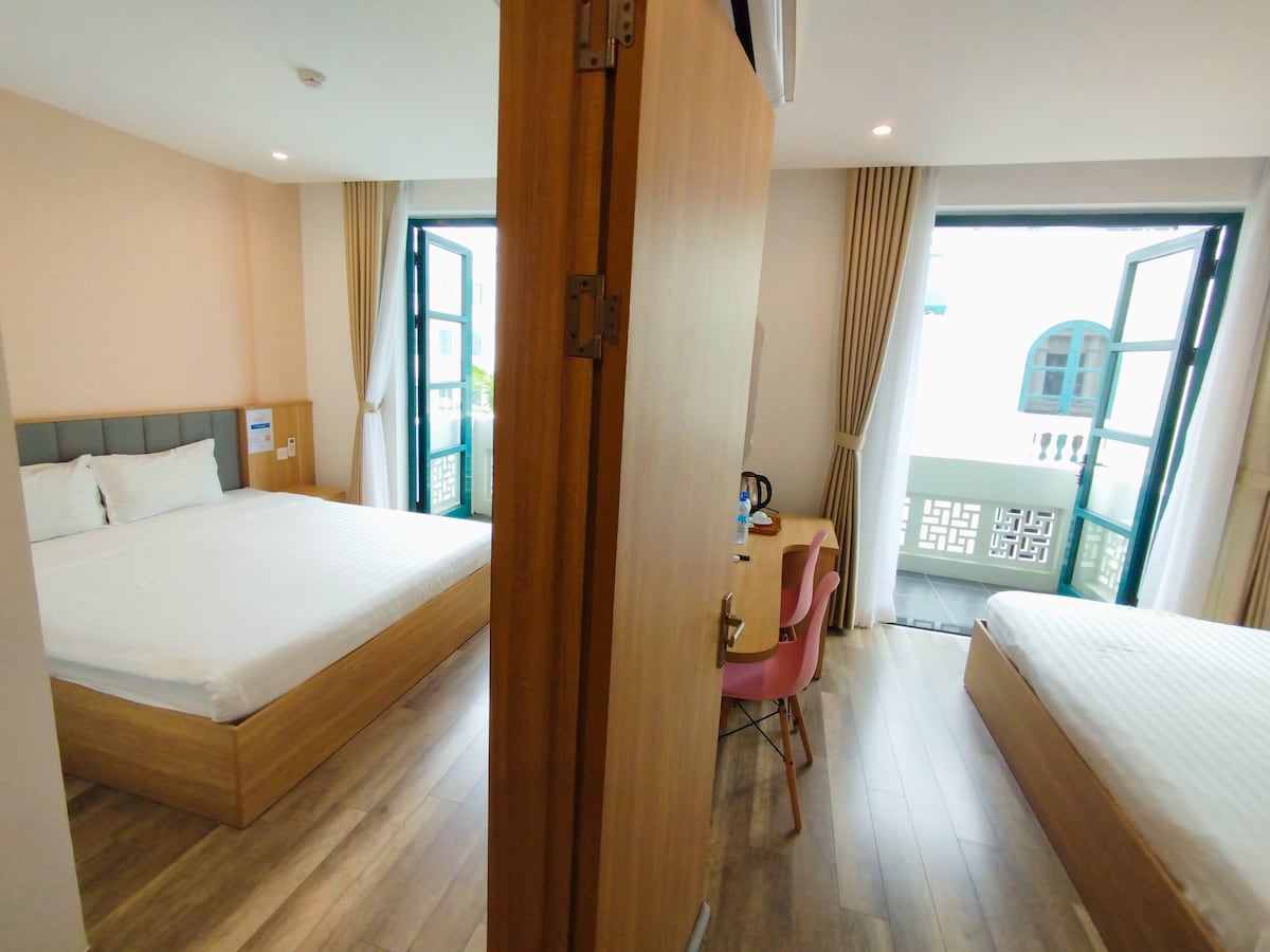 Enjoy a comfortable stay in our Quadruple Room at Varia Hotel-perfect for families or groups of up to four. The room features two queen beds, cozy modern décor, air conditioning, free Wi-Fi, a flat-screen TV, minibar, and a private bathroom stocked with fresh towels and toiletries. A large window offers lovely views of the city, adding to the relaxing atmosphere. Located just steps from Dinh Cau Beach and the vibrant night market, it's the ideal base to unwind and explore the best of Phu Quoc.