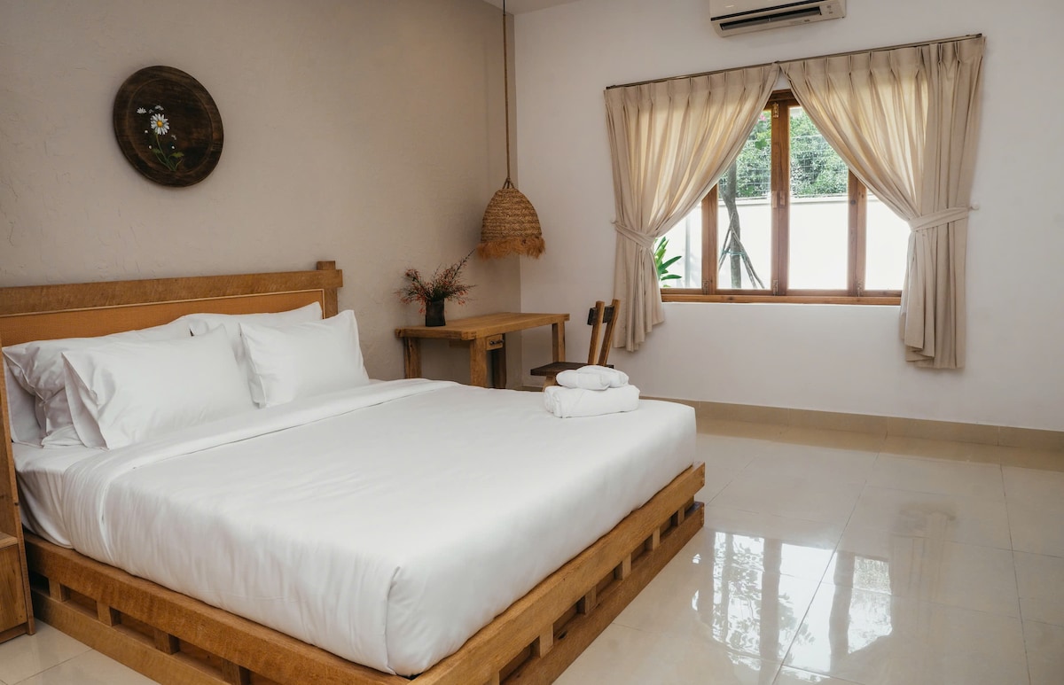 SAVE 50% FOR WINTERTIME! Stay in a Vietnam-inspired, traditional double-bed bungalow located in the heart of Phu Quoc Island. Discover the island with ease—just a 10-minute drive to Duong Dong Town’s city center and the beach, and only 25 minutes from Phu Quoc Airport. Our property is perfect for anyone visiting Phu Quoc. Each bungalow features a private kitchen, while the entire property offers an outdoor pool. The rooms are fully equipped to accommodate both short and long stays.