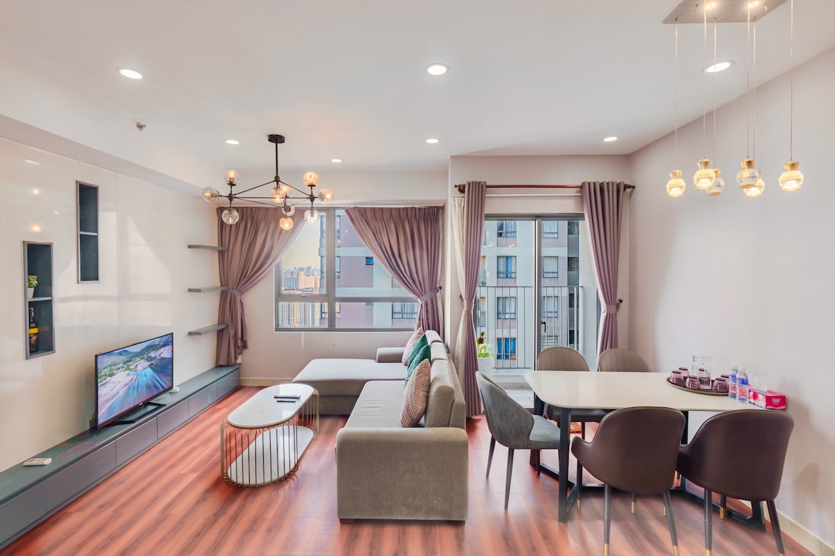 An apartment in the corner of the building (8th floor). You can observer the colorful of Landmark 81 building at night and the city view in other window. Let it bring you more new positive experiences with good senses. - The apartment has everything you need for a comfortable stay: comfortable bed, stove, kettle, refrigerator, washing machine with Clothes dryer, microwave, air conditioner, hot water, milk bath, shampoo, towels, toiletries.