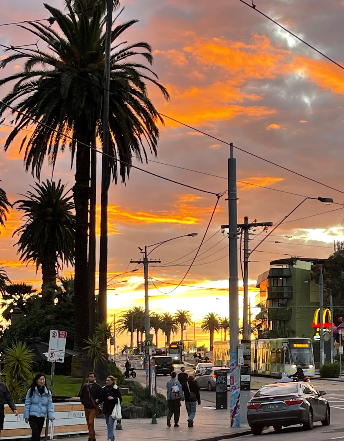 This two-bedroom apartment has stunning views across Port Phillip Bay and Melbourne CBD. It’s 80 metres to the city tram and 10 minutes by tram to MSAC. The penguin viewing platform and the Australian F1 track are 10-minute walks away. There are numerous restaurants, many within walking distance. One highlight is drinks on the balcony as the sun sets across the bay. And early risers may catch the hot-air balloons as they drift across the city.